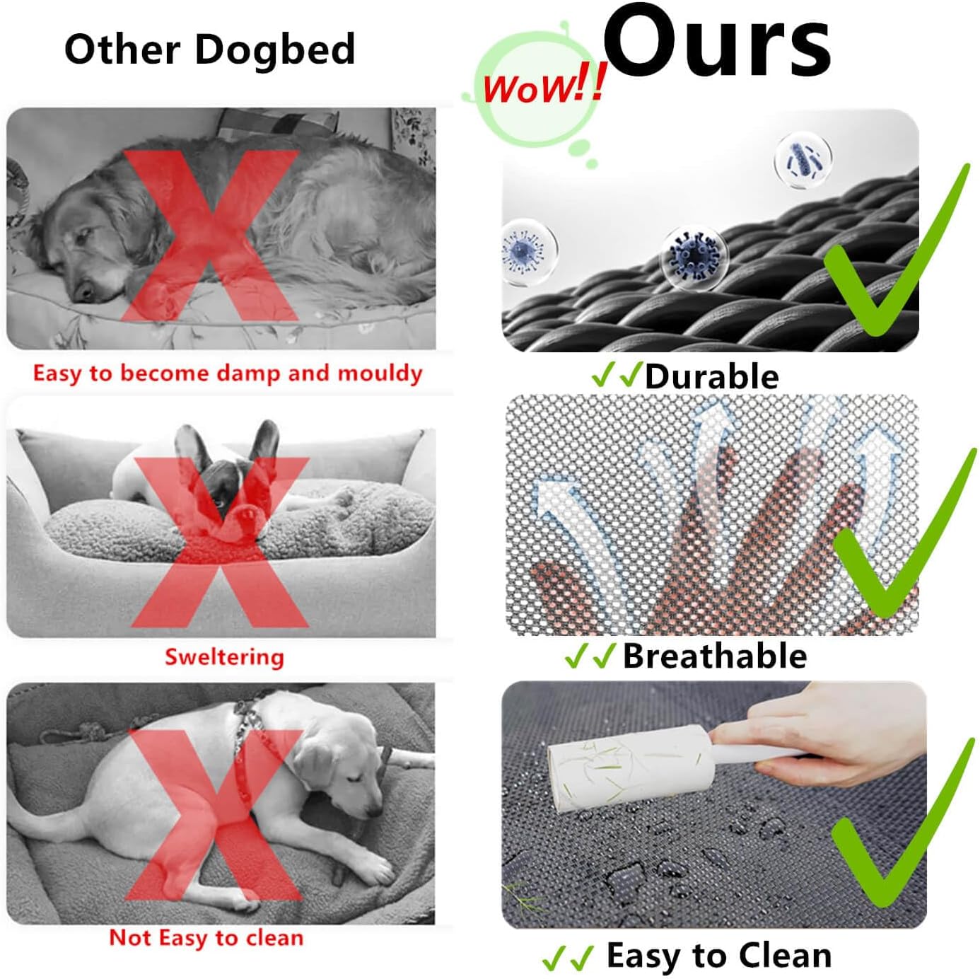 - Sturdy and Durable Design: Durable recyclable mesh features sturdy, breathable and Anti-Scratch. Chew proof dog cots metal frame, and no-skid rubber feet help to keep it in place as your dog hops on and off.