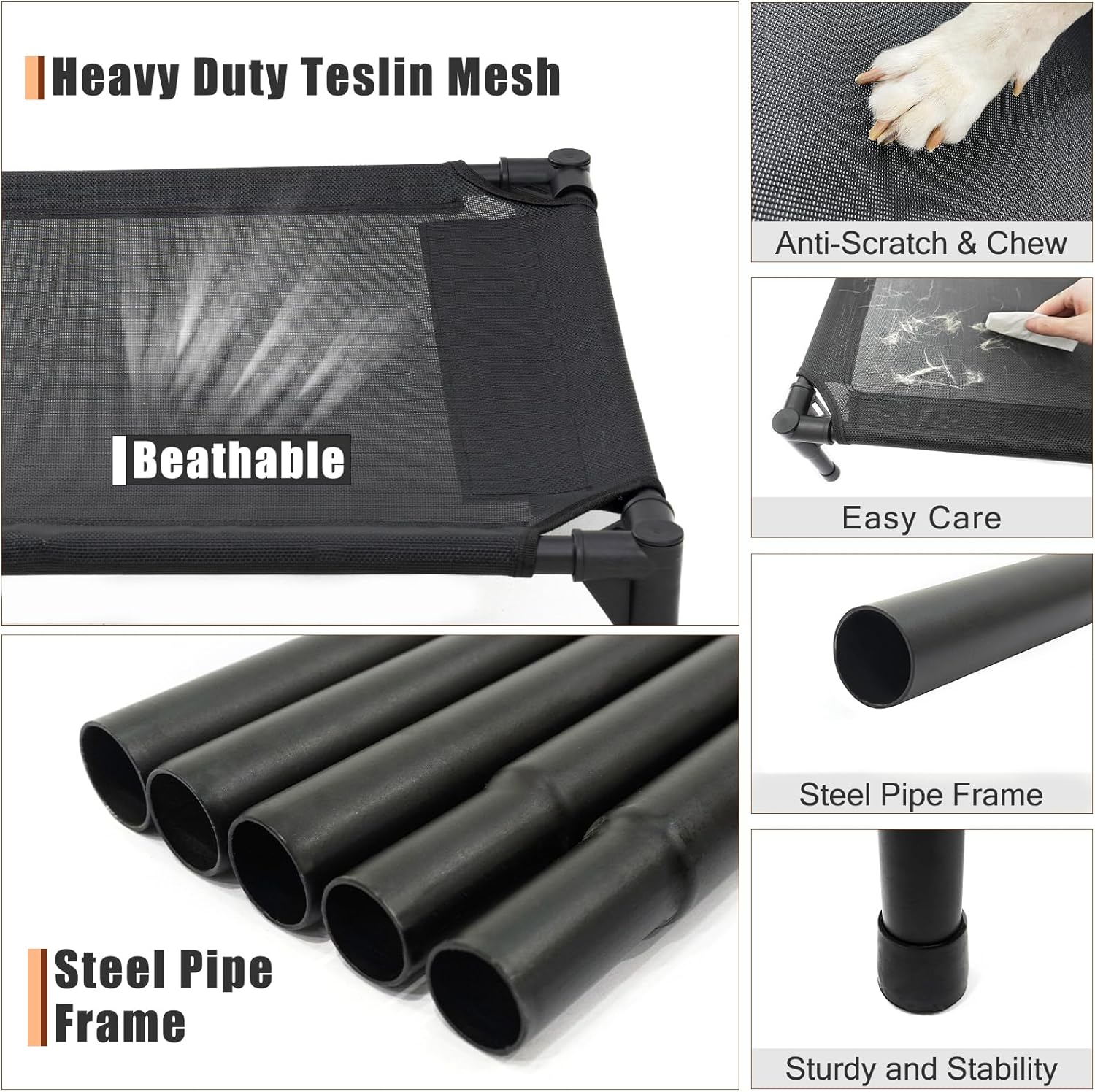 - Stable Structure: With a powder-coated steel tube and durable Textilene fabric, this outdoor pet bed offers strong stability and high load-bearing capacity, eliminating fears of a sudden bed collapse.