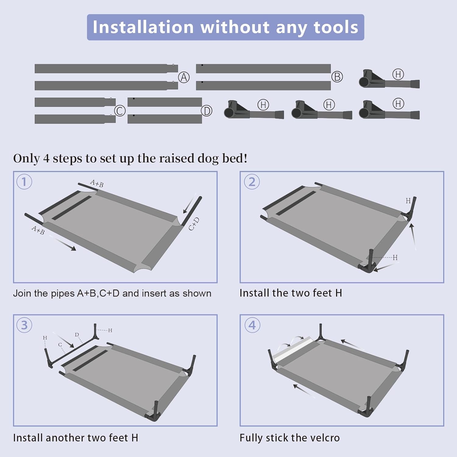 - 【Easy to Assemble】:Our dog bed can be installed directly with embedded parts, without the need for screws and wrenches; Lightweight and easy to carry; Very suitable for indoor or outdoor picnics, camping, or training. If you have any installation issues, please watch the video or contact us!