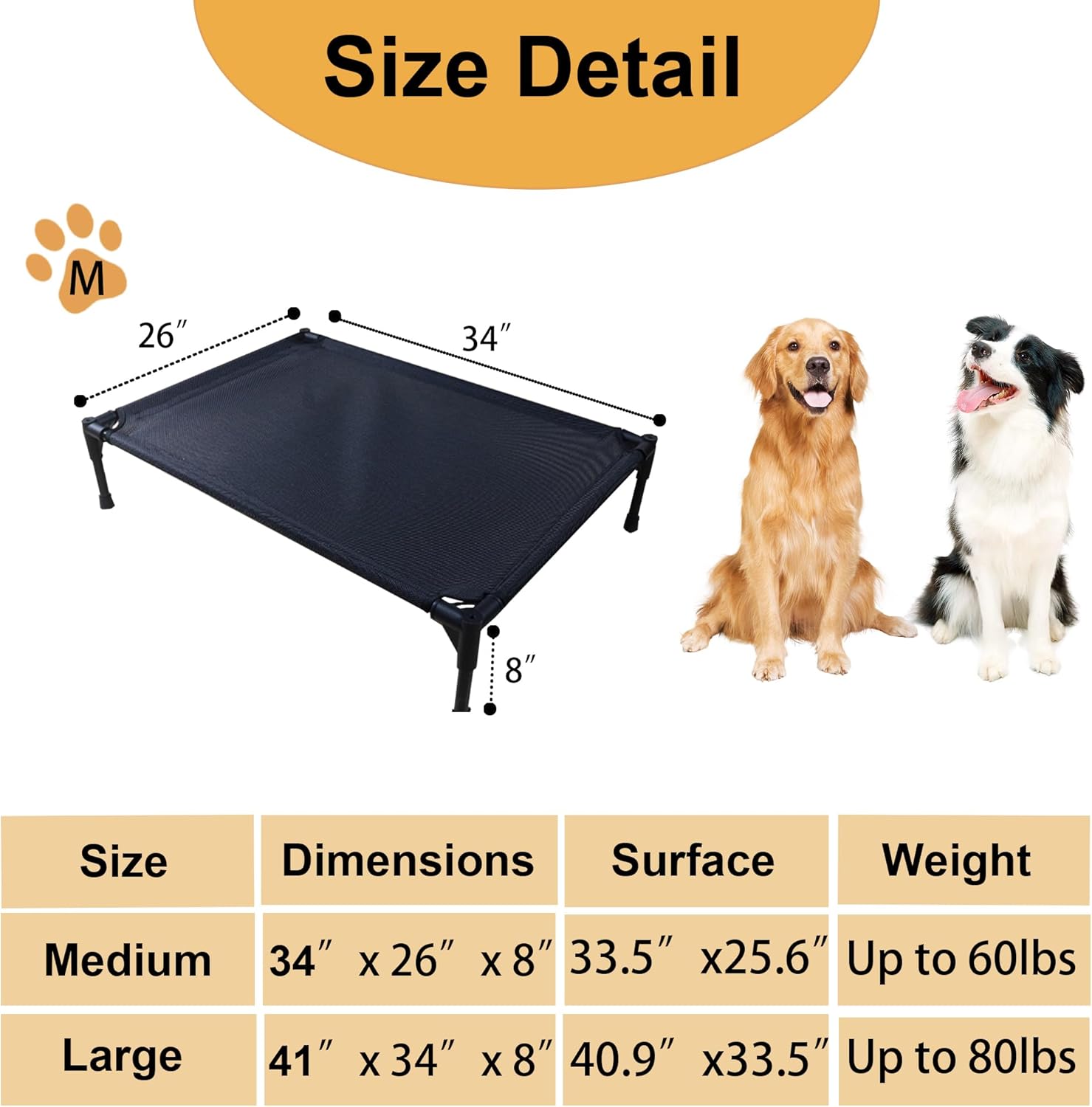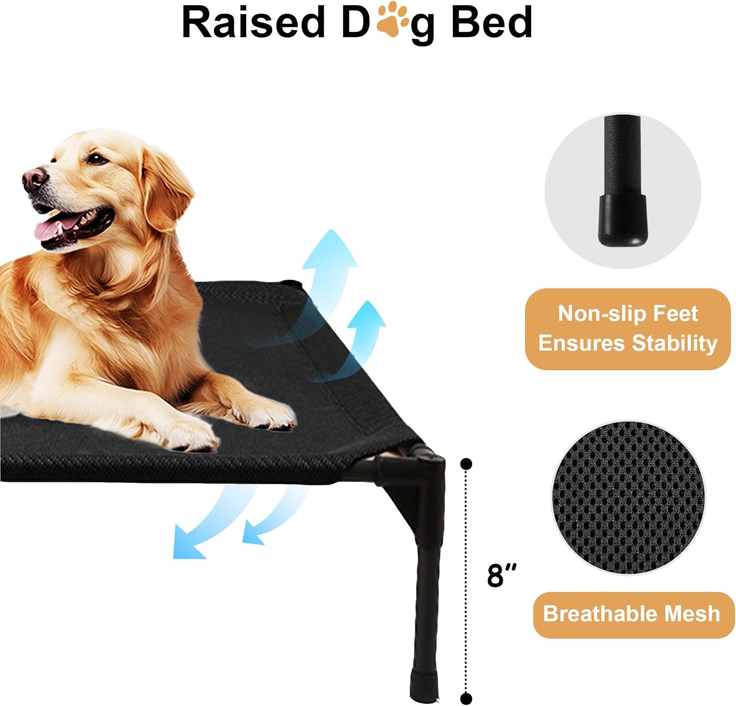 - Elevated Dog Bed: The raised dog bed features breathable fabric increasing airflow on all sides of the bed. And it helps pets stay cool in spring and summer months by allowing air to circulate and keeps pets off wet/cold ground with 8" ground clearance keeping your dog more comfortable, cleaner, dryer, and healthier compared to the ground.