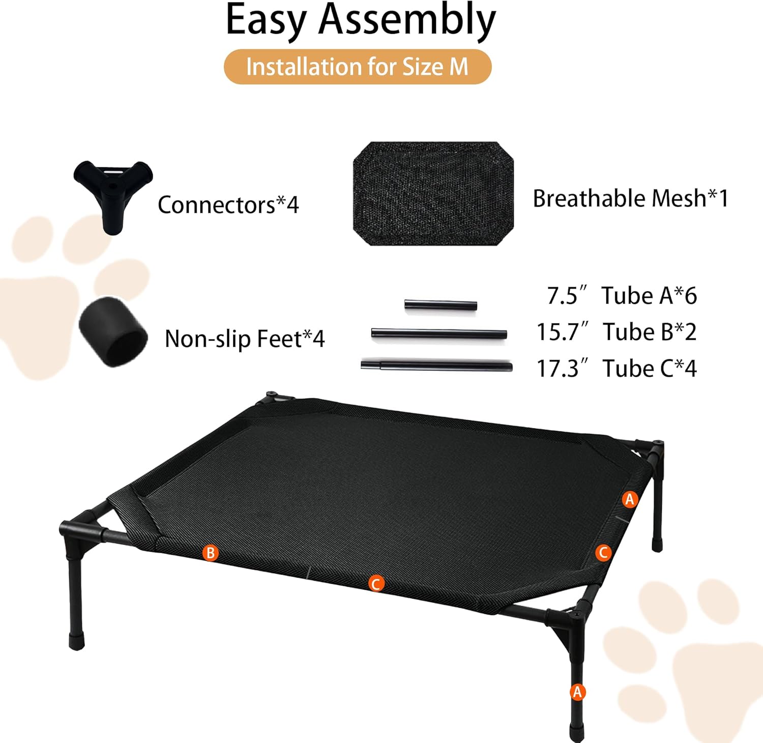 - Easy to Assemble: No screws and wrenches needed. The dog bed can be directly installed by using the plug-in, making this portable bed perfect for use during travel, camping, picnicking, place cot for dog training, etc.