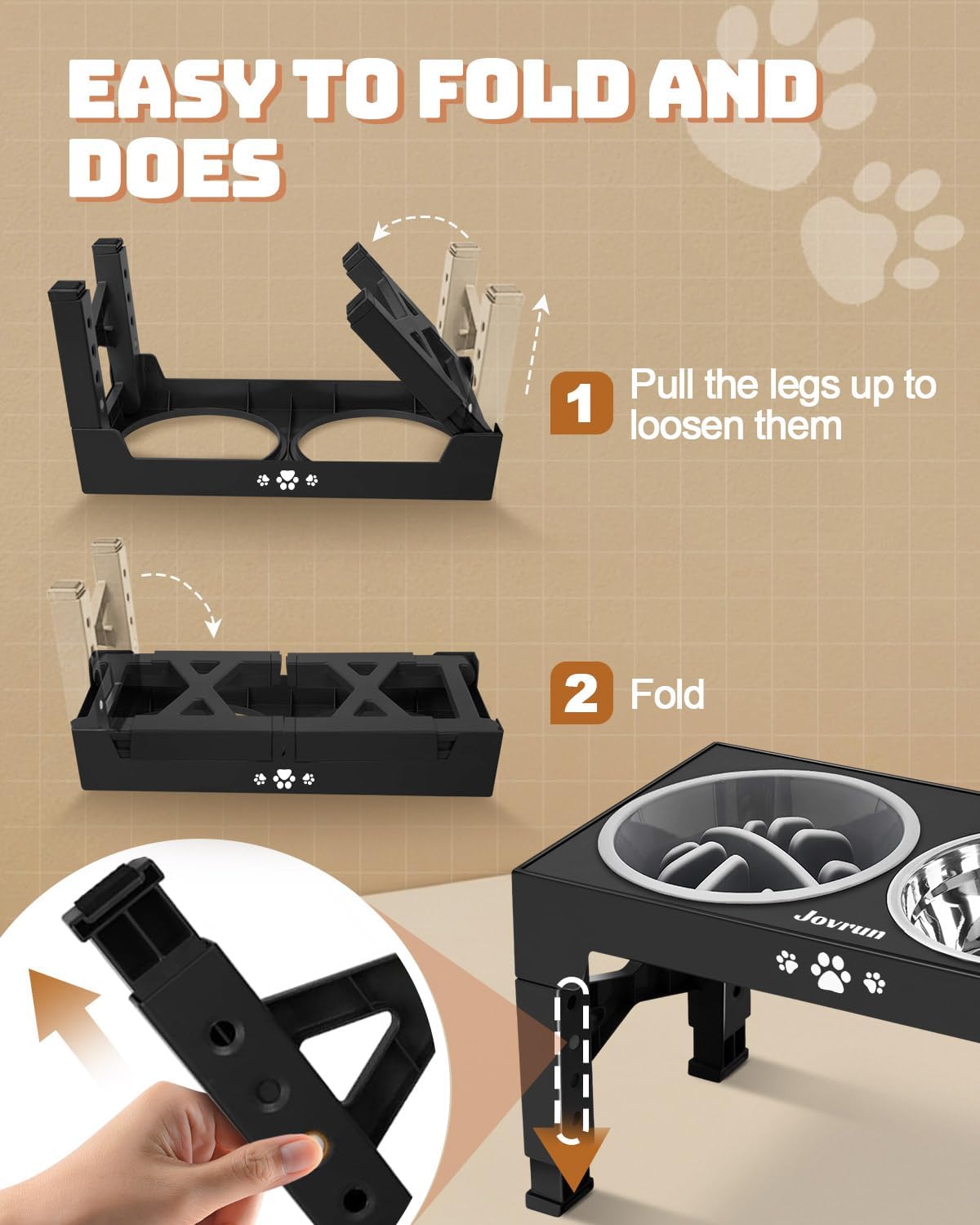 - Easy to Use Anti-slip Stand: Elevated pet bowls with antislip feet make it stable and prevent sliding, offering protection for your floors. Noise-free rubber rim for your dog to enjoy quiet dining. Fold and store the legs with a simple push of a button after use. If one of the brackets keeps falling and it won't lock, please pull out the bracket and let the buckle return.