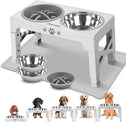 - 5 Heights Adjustable Stand: The dog bowl stand can be adjusted to 12 inches, 10&11inches, 9 inches, and 3.1 inches. The raised dog bowl can not only makes it easier and comfortable for dogs to access their food and water, but also prevents dust or floor debris from falling into the bowls, ensuring a clean and healthy dining experience.Tip:Due to the large height difference between the first and second layers, please confirm before purchasing to avoid very small dog breeds being unable to use the lifting height.