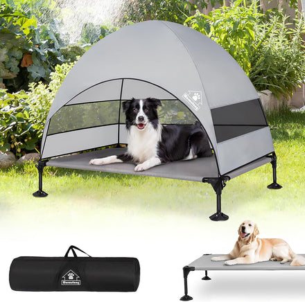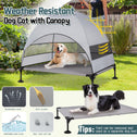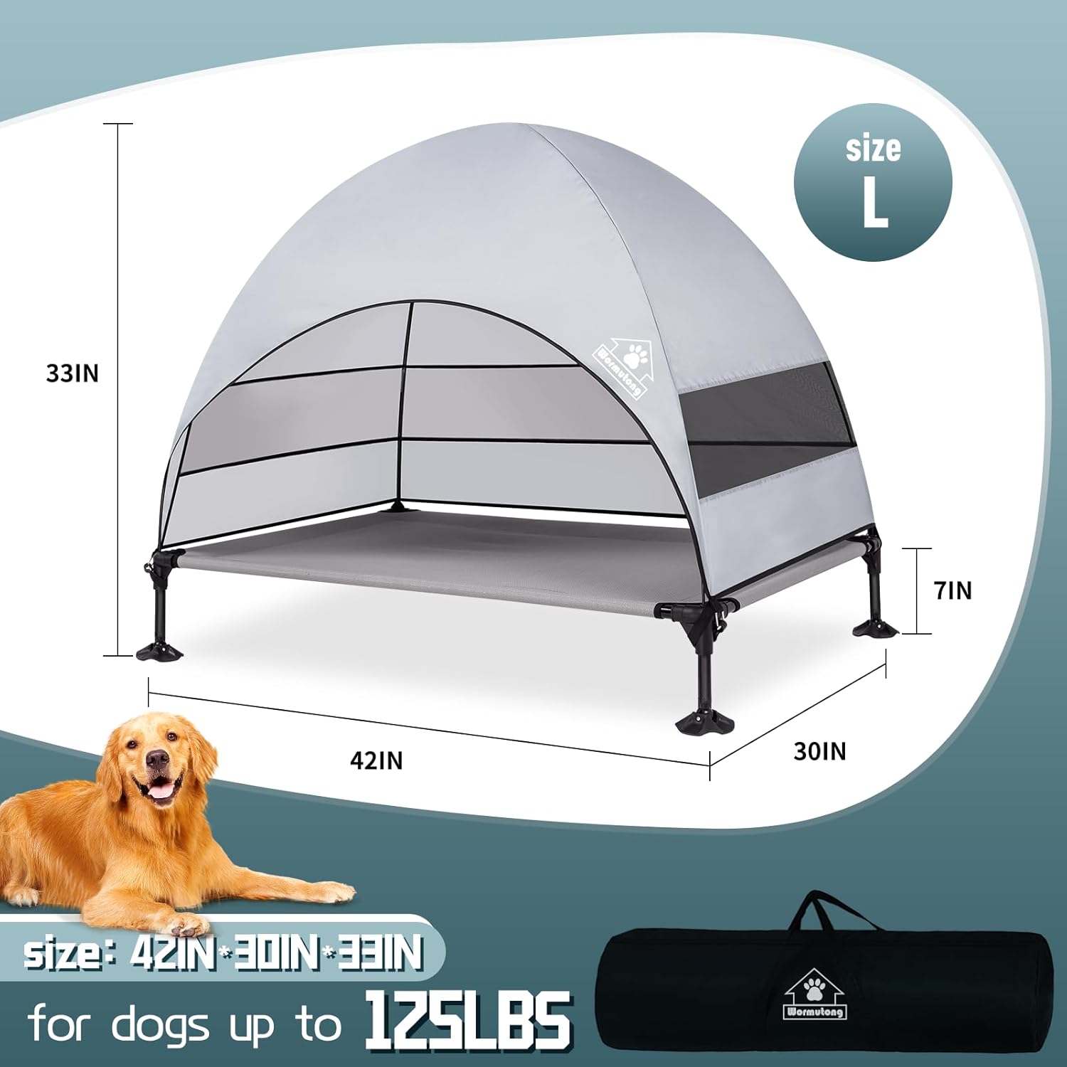- 【More Than A Dog Canopy Bed】 This dog cot bed is more than just a pet camping essential! The shade canopy can be removed for indoor use, airflow underneath to keep the pet cool. Our dog cot bed boasts upgraded adjustable feet that make the raised dog patio bed perfect for outside activities like camping, hiking, beach, and backyard picnics.
