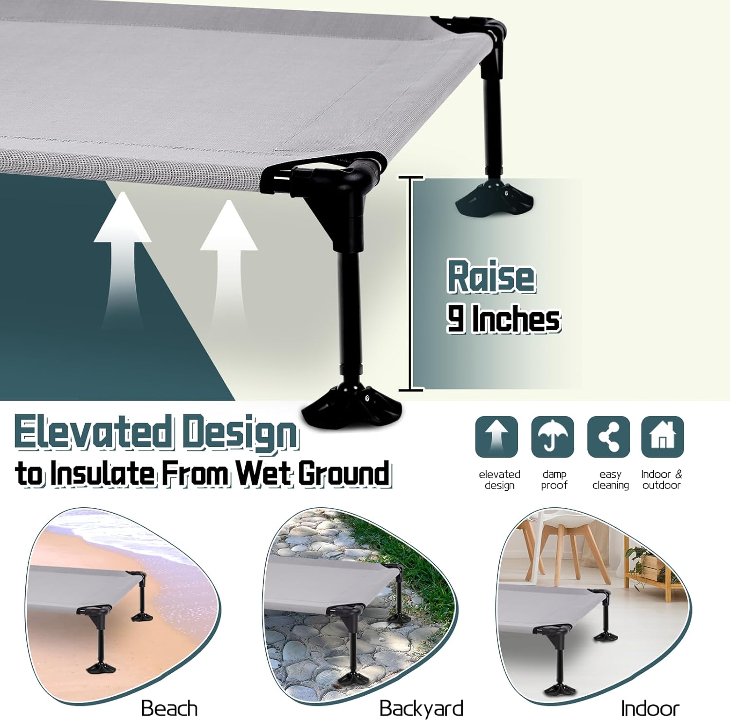 - 【Foldable & Quick Assembly】 No tools required and dog camping essential! Our outdoor cooling large dog bed can be set up quickly and easily in just 10 minutes. The xl elevated dog bed is lightweight and portable, provides cooling and lounging for your pet, making it a convenient choice for outdoor and on the go.
