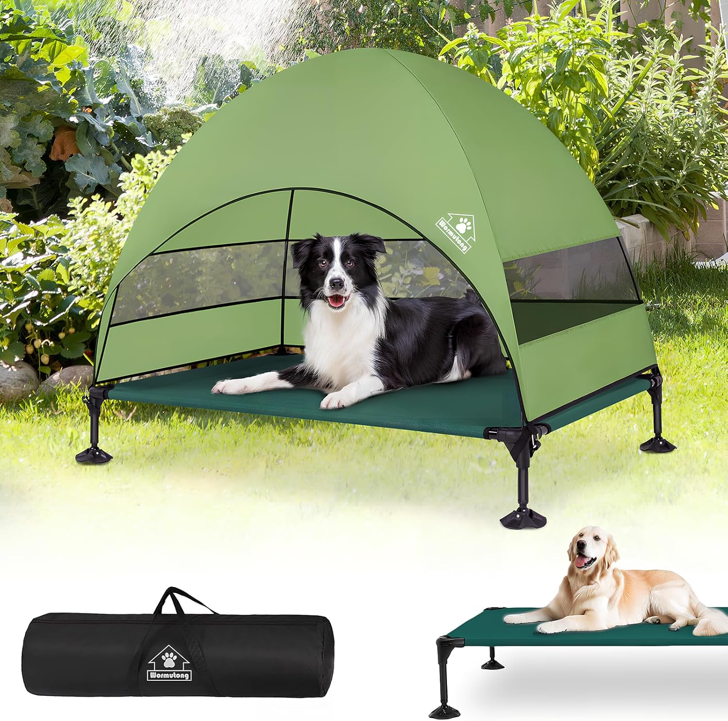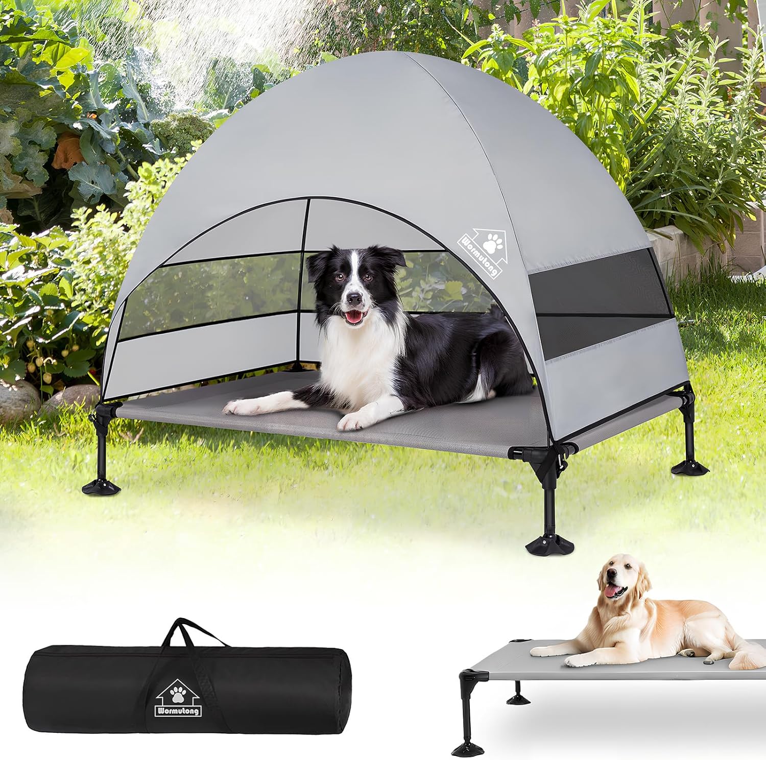 - 【High Density & Easy to Clean】 The off-ground outdoor dog canopy bed is made of high density teslin material, long-lasting and comfortable. And it is also chew-proof, and easy to clean, just wipe it down or rinse it with a hose. In addition, it prevents pet hair from sticking and keeps the outdoor dog tent bed tidy.