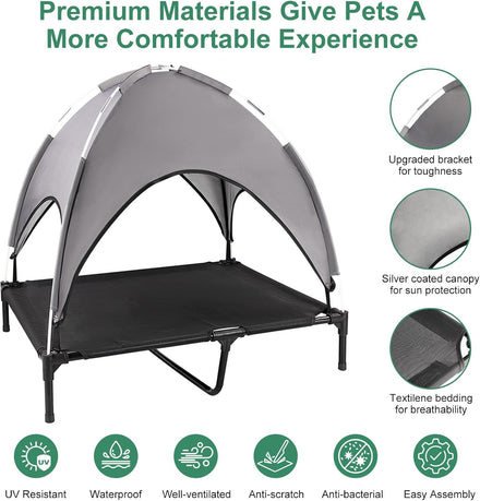 - 🐶【Suitable for Any Weather】- The canopy of this dog bed is made of high quality oxford material with silver ions coating, having high performance in waterproof and UV-resistant(SPF50+), can easily cope with scorching sun, heavey rains and other kinds of bad weather.