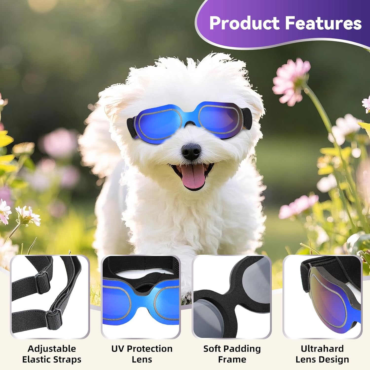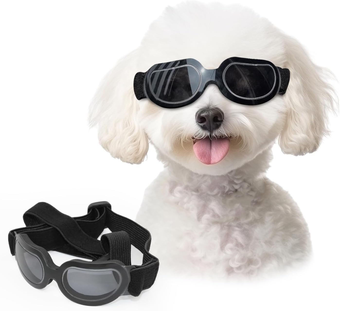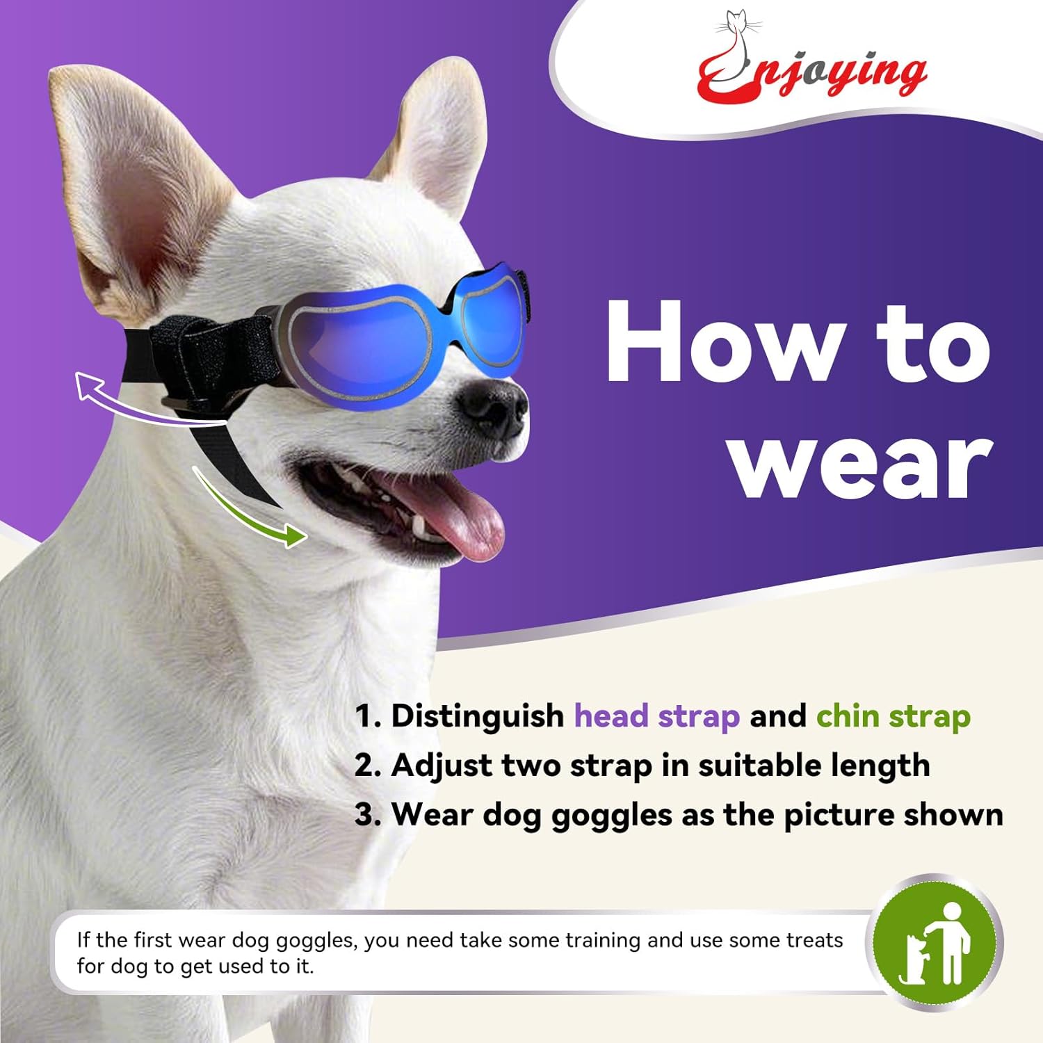 - Enjoying Gafas de sol para perros pequeños hechas de marco de polietileno, el revestimiento a prueba de sol en la lente súper dura bloquearía los rayos UV y dañará los ojos de tu cachorro. Las alfombrillas suaves en el borde del marco interior hacen que tu perro alrededor de los ojos sea más cómodo.