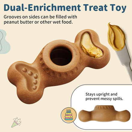 - Dual-Enrichment Dog Treat Toy - You can add peanut butter, yogurt, pumpkin, cheese or broth inside the cups to make frozen pops, dog ice cream or just fill with refill treats for lasting licking. The grooves at both ends of the toy can be filled with peanut butter or other wet food.