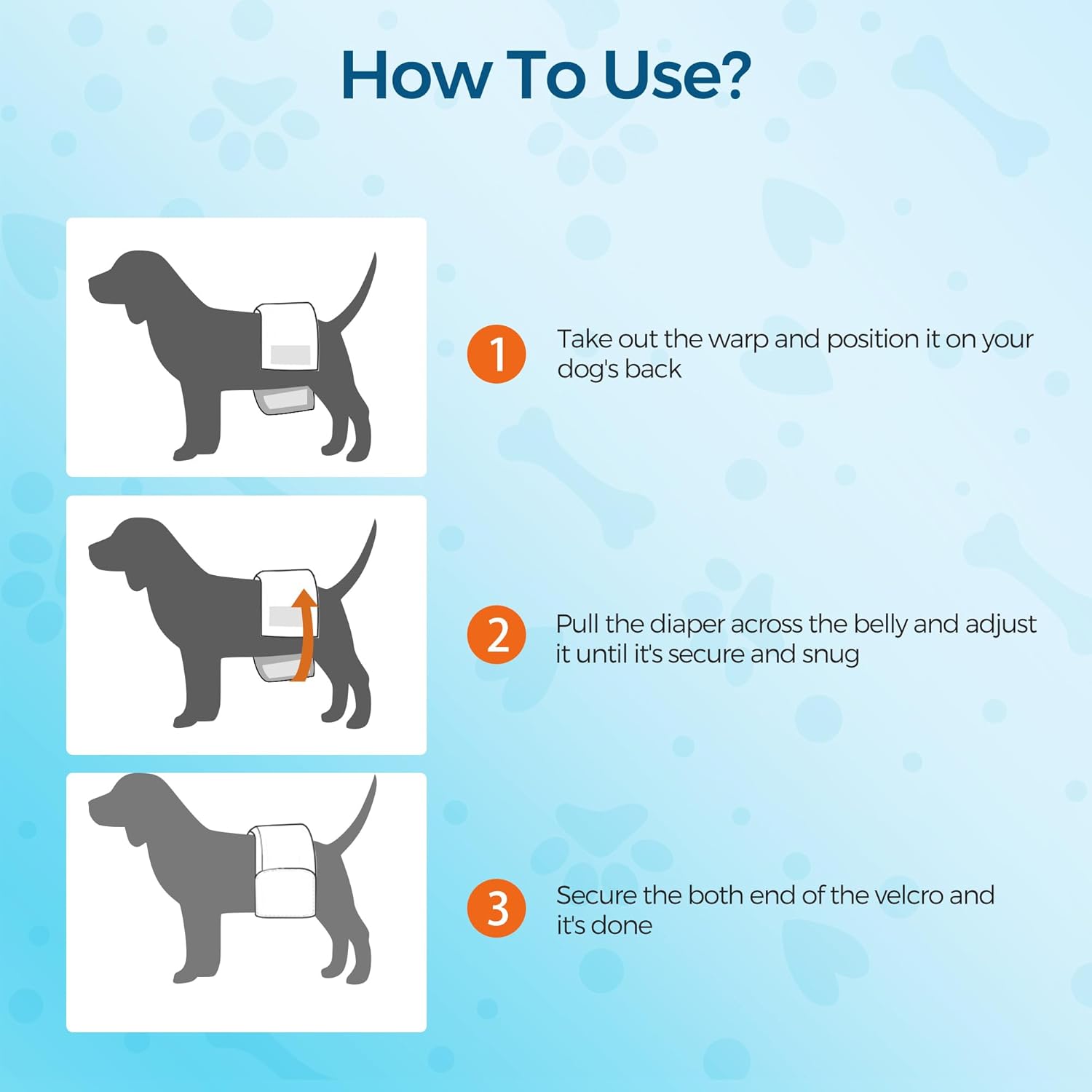 - Superabsorbente, a prueba de fugas: con un polímero súper absorbente, la envoltura para perros machos convierte rápidamente la orina en gel, de secado rápido y bloquea la humedad. Asegurar que el pelaje del perro se mantenga seco. La película trasera de polietileno a prueba de fugas proporciona protección para toda la casa, ya no te preocupes por fugas que dañen tu alfombra, alfombra, silla o sofá
