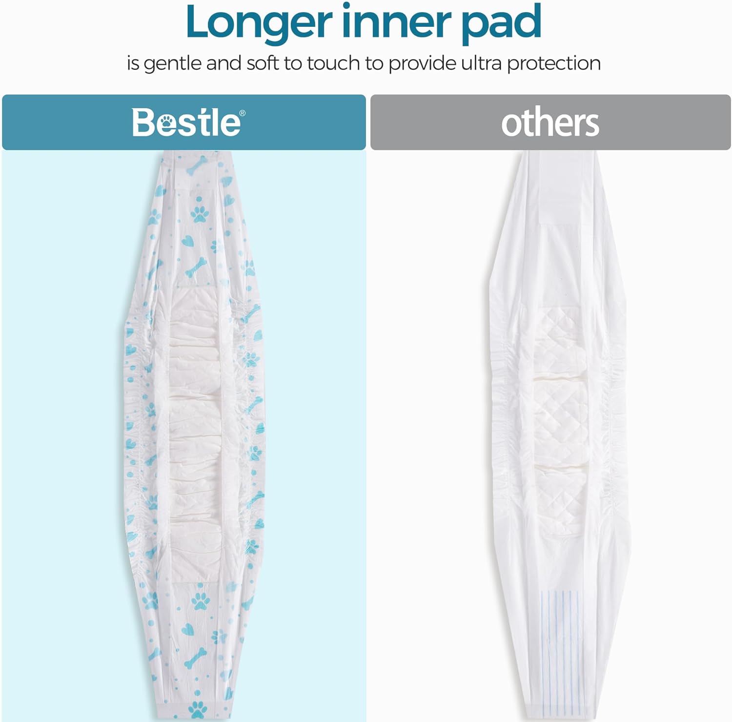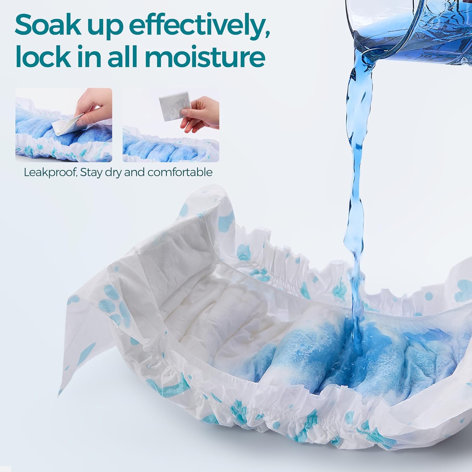 - Material de alta calidad: fabricado con pulpa esponjosa superior, tela no tejida suave y una película de polietileno transpirable, estos pañales proporcionan un tacto suave y garantizan la higiene y comodidad de tu perro. Los pañales para perros ofrecen la máxima absorción y permiten que tu perro juegue con alegría y libertad