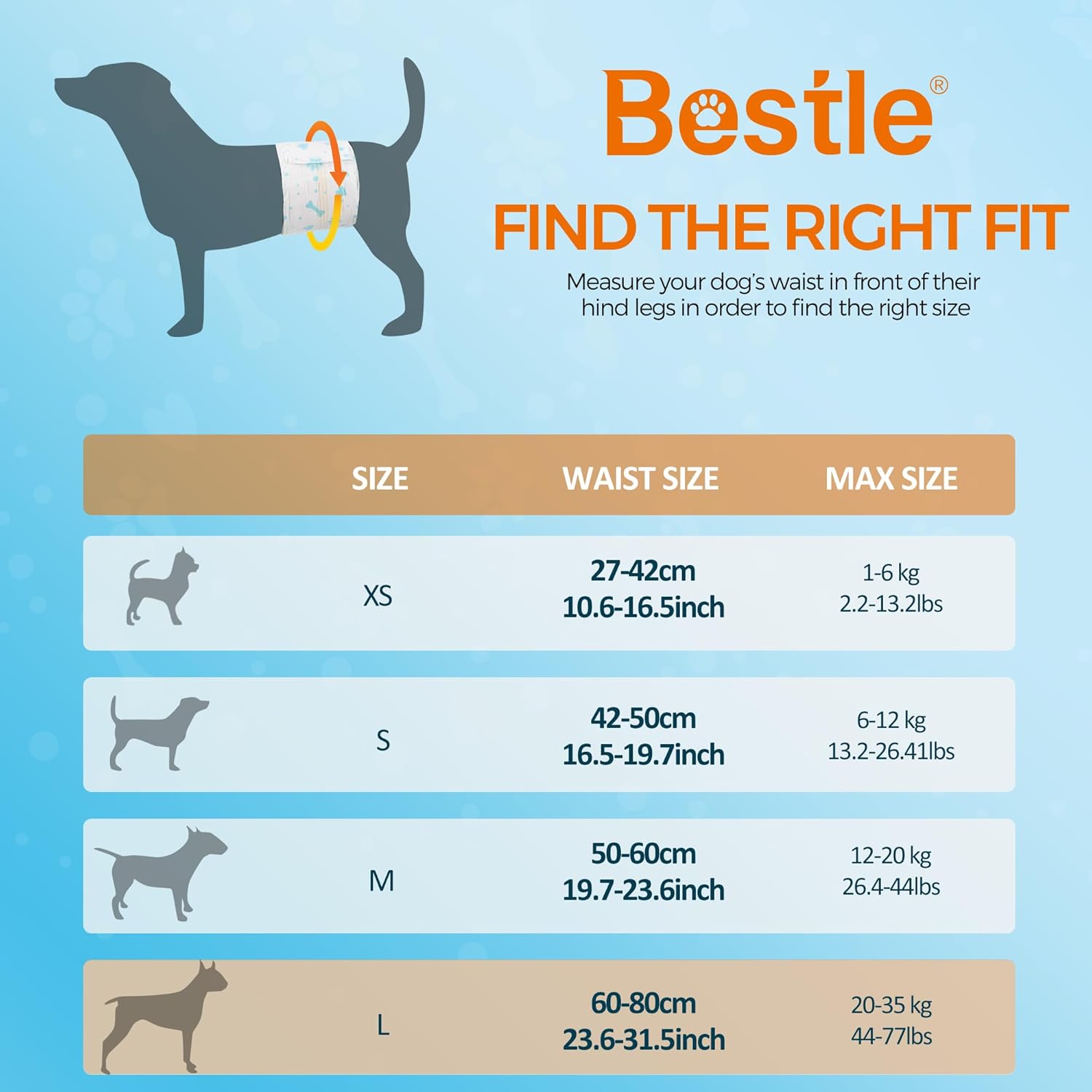- Seguro para la piel, fácil de usar: los pañales para perros machos están hechos de tela suave elástica, cintura elástica flexible que es fácil de poner y quitar, fácil de usar. Se pueden ajustar y mantener en la posición correcta para evitar que se atrape el pelaje. El tamaño L es perfecto para perros machos de 44 a 77 libras, o con una cintura de 23.6 a 31.1 pulgadas como Labrador Retriever, Gran Danés o Rottweiler