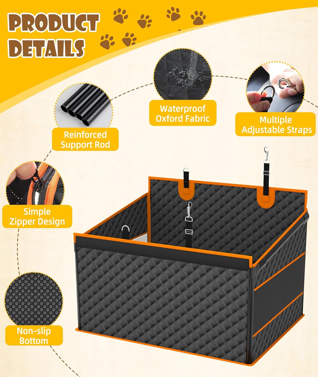- Safe and comfortable design: Our dog car seats are made of waterproof Oxford cloth with a reticulated perimeter around the left and right sides, waterproof and breathable. The bottom is non-slip, while 8 reinforcement rods provide additional support, making pets more comfortable and safe.