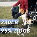- Durabilidad mejorada y capacidad de carga de peso mejorada: cada paso de la rampa para perros DeerGym cuenta con un marco de aluminio resistente al óxido con barras de carga adicionales para un paso duradero que puede soportar hasta 230 libras. Es el regalo perfecto para proteger las articulaciones y rodillas de tu mascota de lesiones, manteniéndolas seguras y cómodas. Libérate de la molestia de luchar para levantar a tu perro en el automóvil.