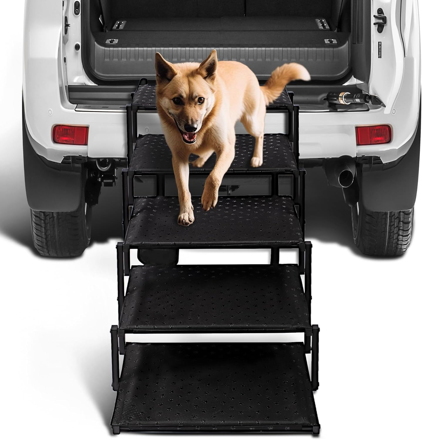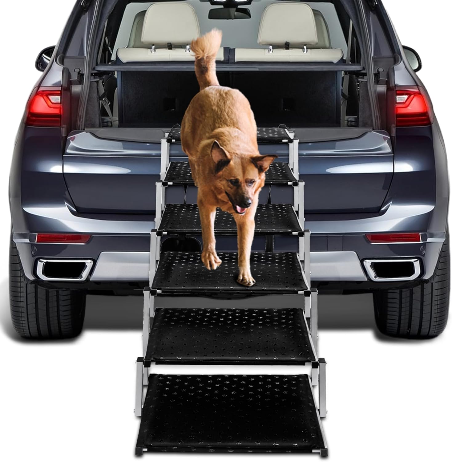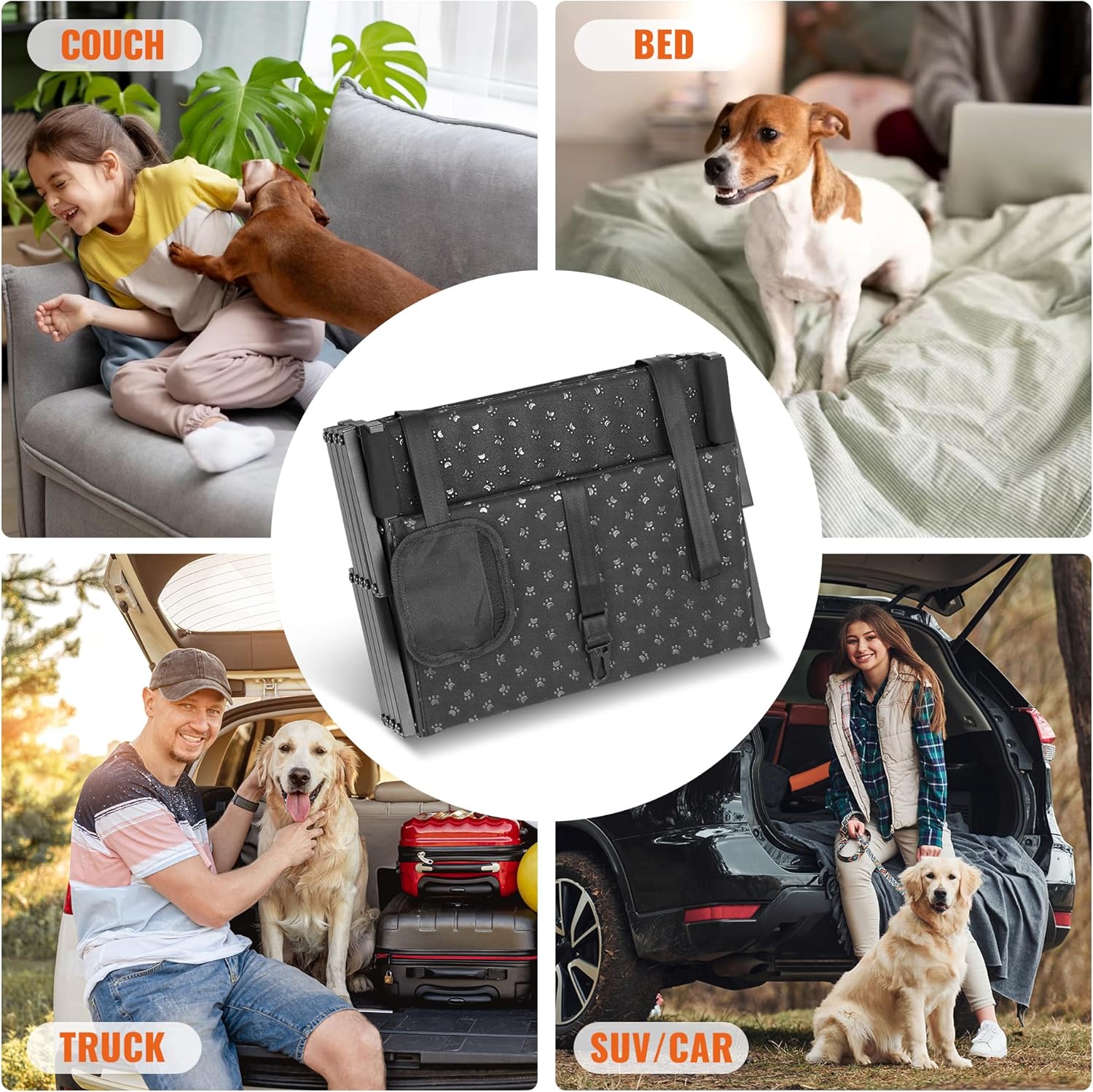 - Fácil de instalar y almacenar: las escaleras grandes para mascotas de Heeyoo no tienen complicaciones, fáciles de instalar y transportar. Con un diseño compacto y plegable, no ocupa demasiado espacio en el automóvil, por lo que es posible llevar a tu mascota a viajar contigo.