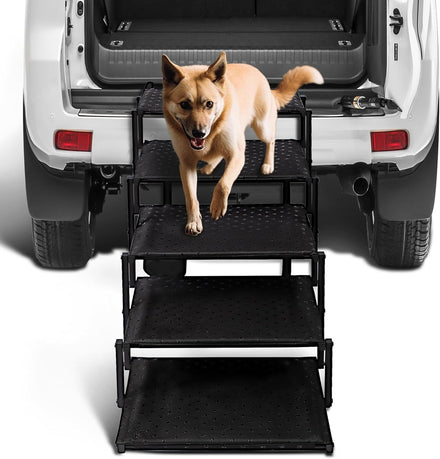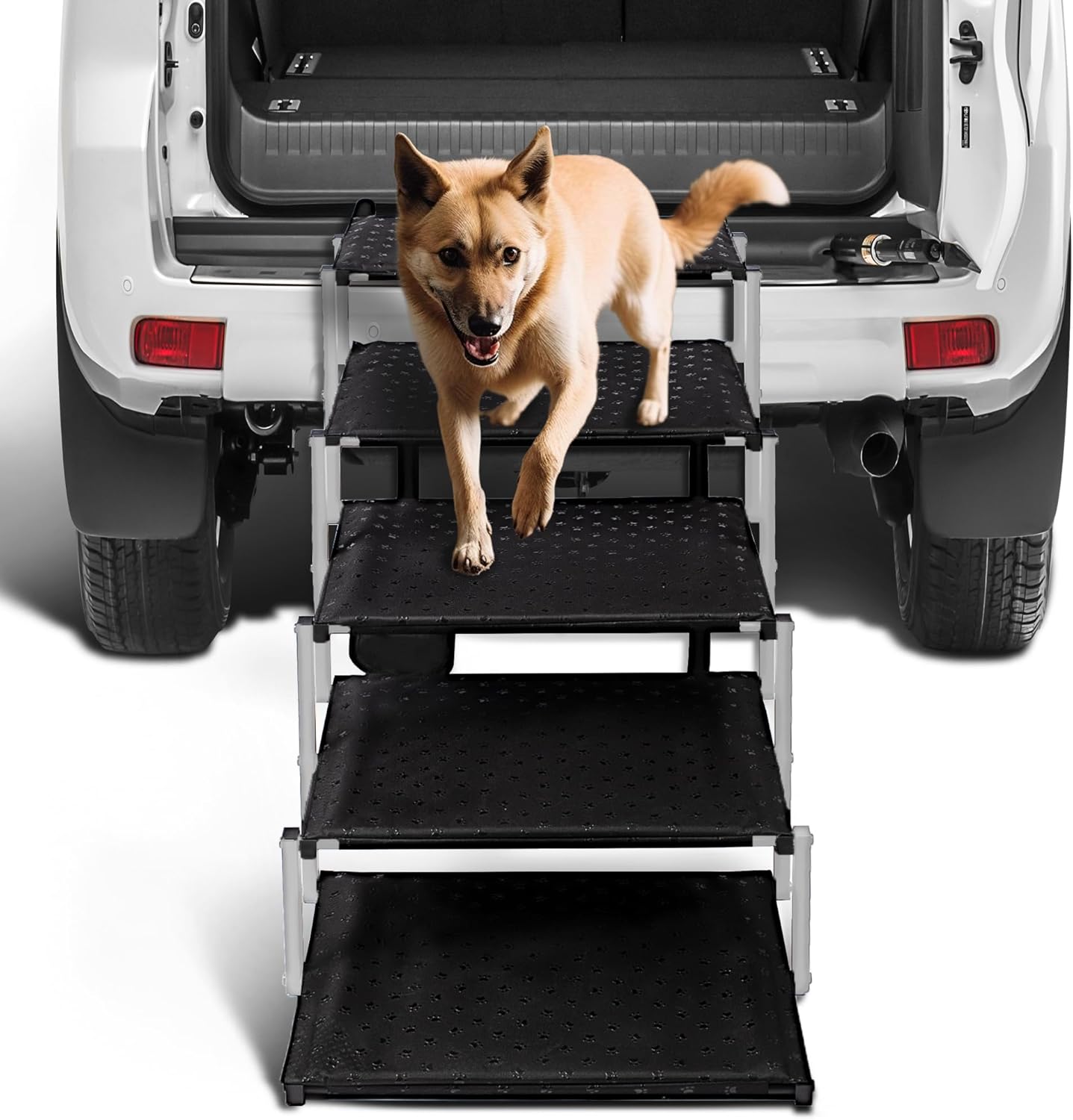 - Altura ajustable: nuestras escaleras de coche para perros se pueden ajustar a una altura entre 17 y 28 pulgadas. Mide antes de realizar el pedido y ten en cuenta que para puertas laterales, asegúrate de que tu apertura sea mayor de 17 pulgadas.