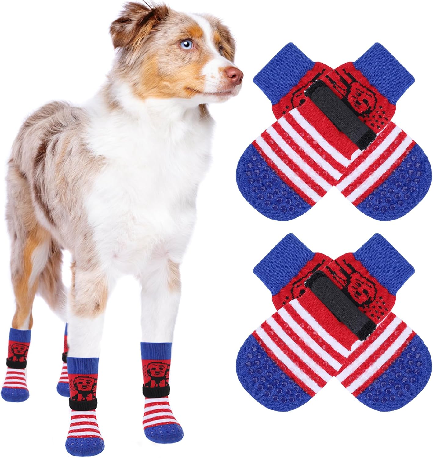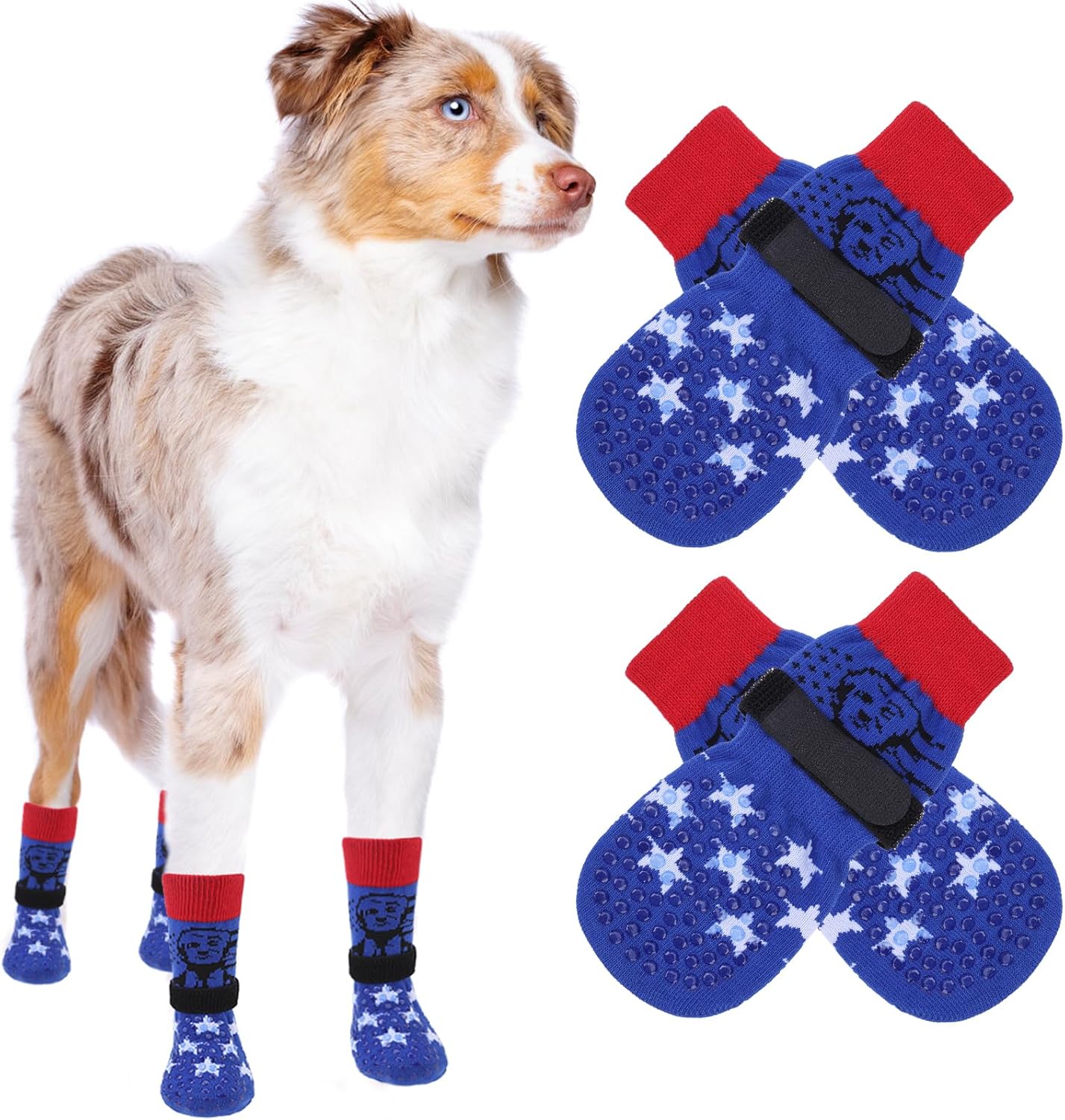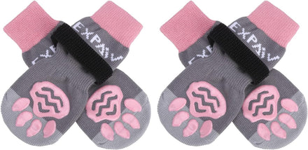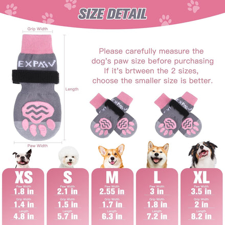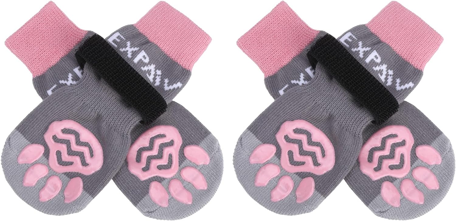 EXPAWLORER 4Pcs Anti-Slip Dog Socks - Double Side Non-Slip Paw Protector for Hardwood Floors,Prevent Licking,Dog Booties,Dog Shoes for Hot/Cold Pavement