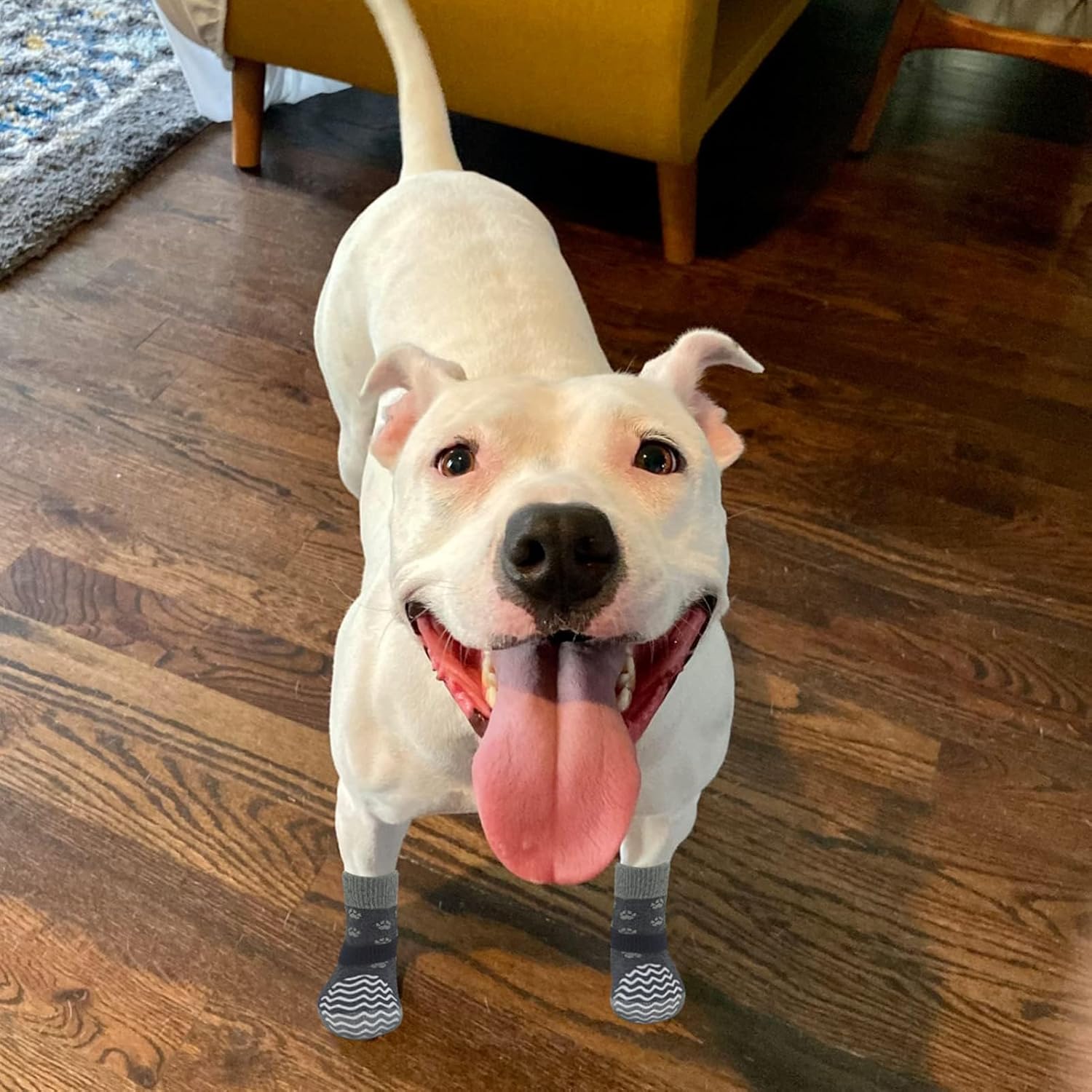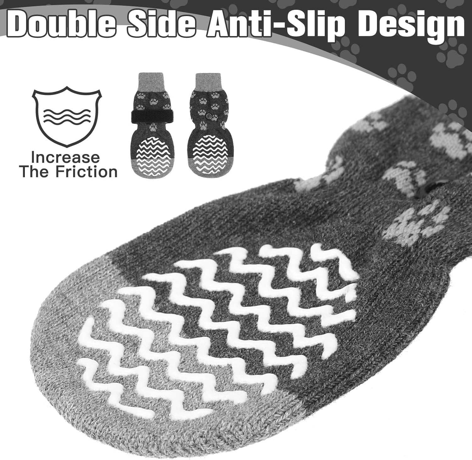 DOUBLE-SIDED GRIPS: Designed with unique wave-shaped grips on both sides, these socks offer excellent traction, reducing the risk of slips on smooth surfaces. Perfect for puppies, senior dogs, and pets who need extra stability. The anti slip rubber covers a larger area, providing more effective grip