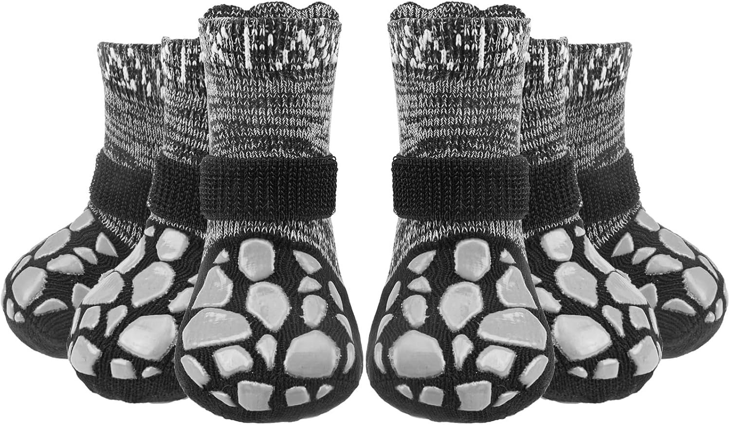COMFORTABLE TO WEAR: Our dog socks are made from high-quality, breathable materials(75%cotton + 25%Polyester), these socks provide comfort and support while withstanding everyday wear and tear. The socks have elasticity and do not feel tight, making them comfortable to wear. Summer won't feel stuffy, winter can provide warmth, making them ideal for both indoor and outdoor use