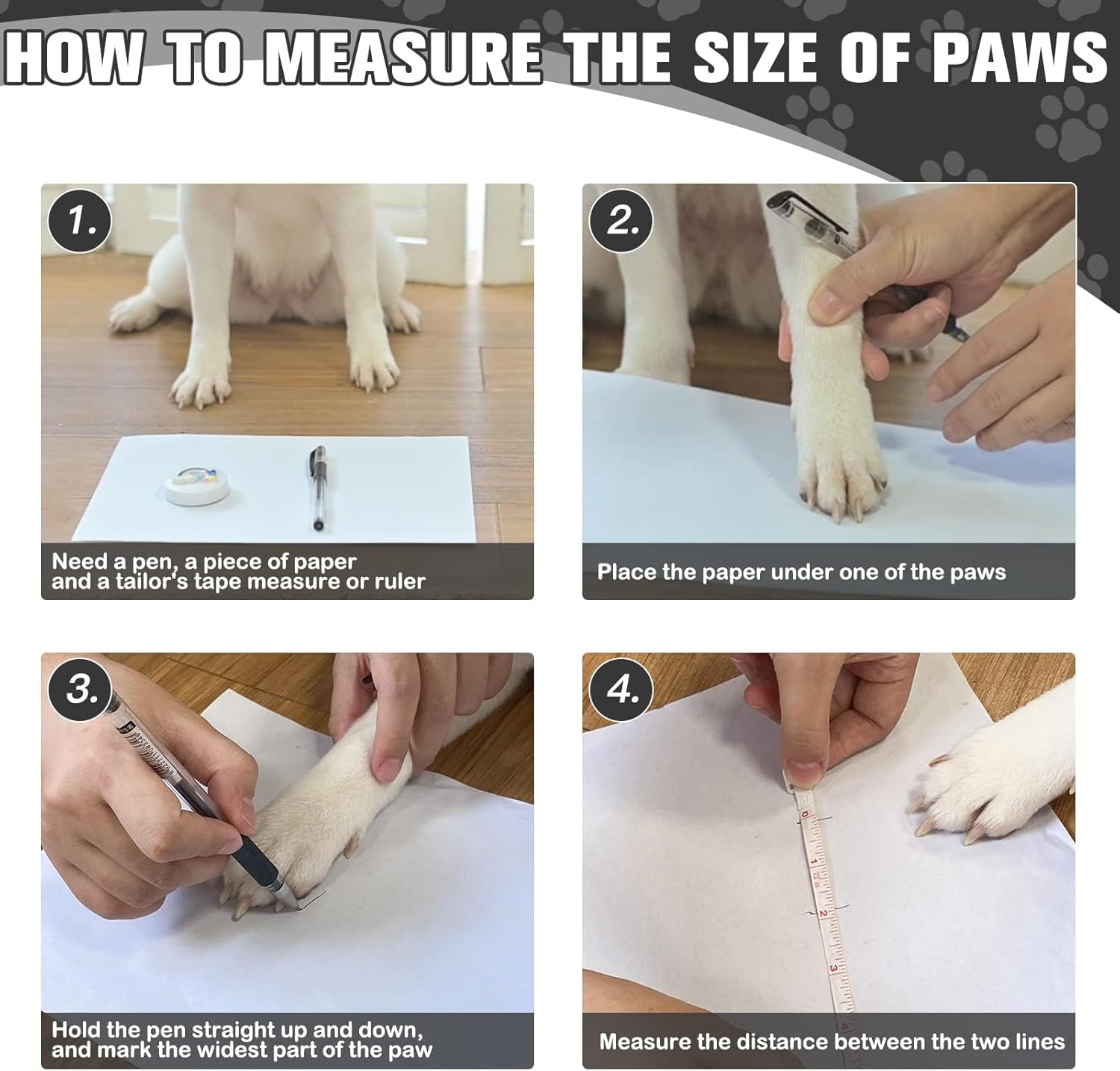 SIZE XS: Paw width 1.8 ", Length 4.8", Grip width 1.4 ". This dog sock is available in 5 sizes. Please measure your paw size before purchasing. If your size is between two sizes, it is better to choose a smaller size. Because our paw protector socks are made of elastic fabric.