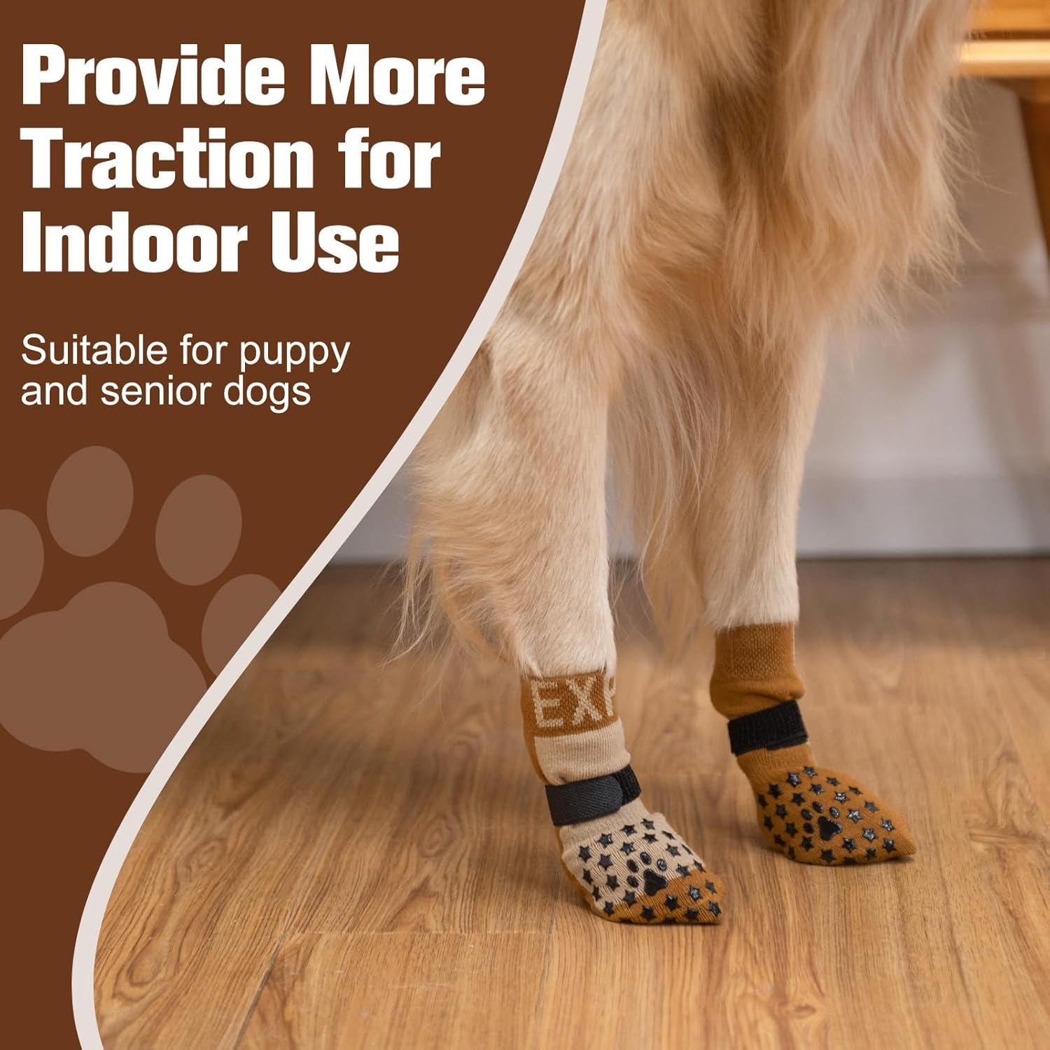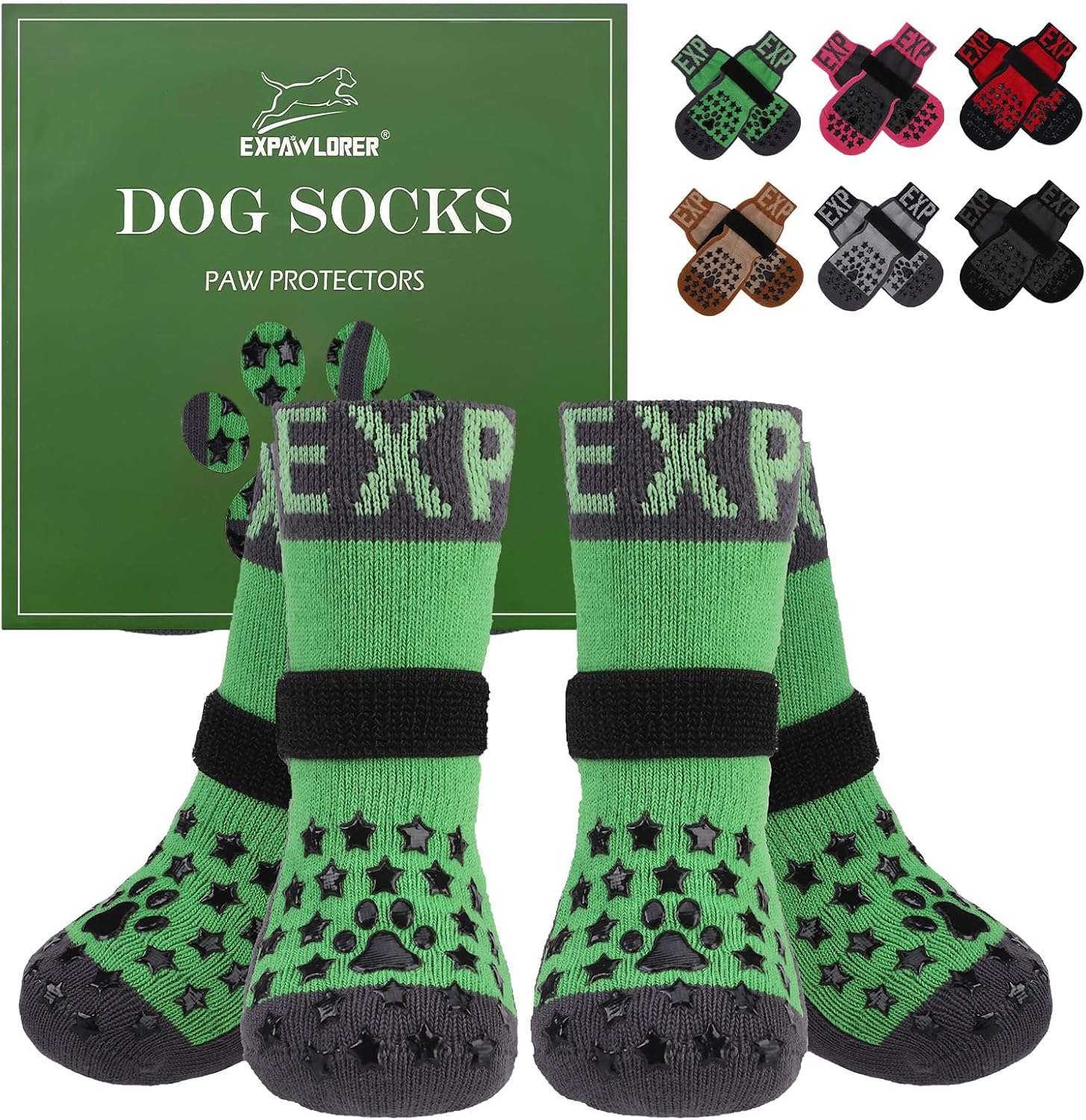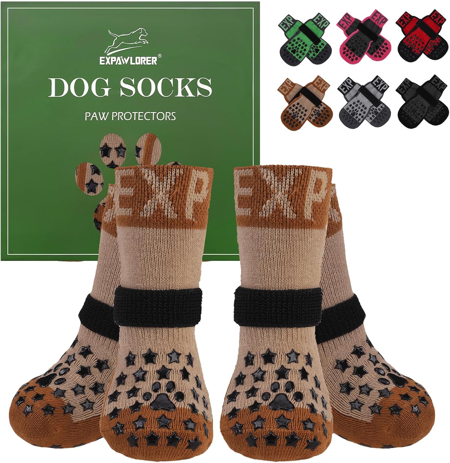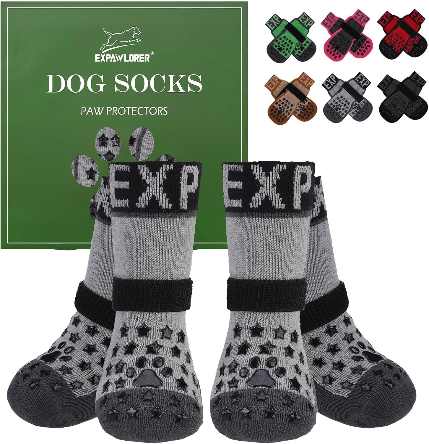 EXPAWLORER Anti Slip Dog Socks to Prevent Licking Paws - Dog Shoes for Hot Pavement, Dog Booties for Hardwood Floors, Dog Boots & Paw Protectors with Grippers for Small Medium Large Senior Dogs