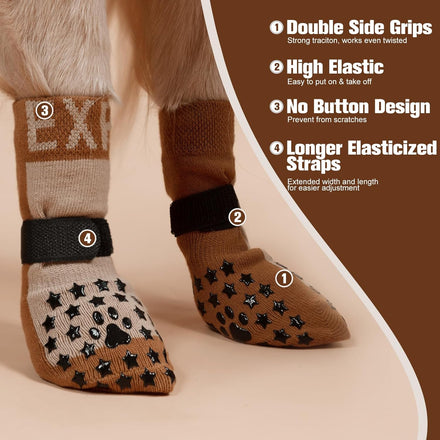 Dog Socks with Grippers: Our exclusive patent design features grippers on both sides of the socks to provide extra traction on smooth surfaces. Even if the socks twist, the grippers ensure stability, making them ideal for active pups and senior dogs who struggle with slipping on wooden floors.