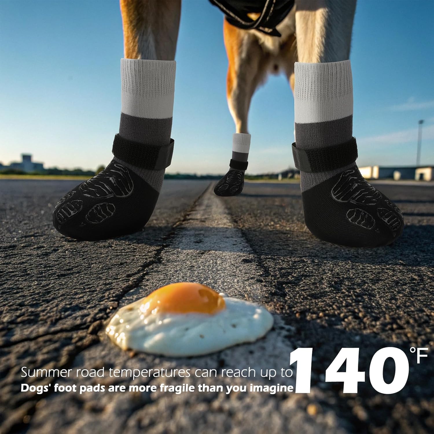 ALL-WEATHER PAW PROTECTION: Protect your dog's paws in every season with Expawlorer Dog Socks & Boots. Hot ground can cause discomfort and even injury to the paws, but our dog paws can prevent direct contact with the hot ground, making it easier to walk dogs during hot summers. Our dog socks can also be used on cold snow and slippery ice in winter, on hardwood floors in homes, and with injury prevention and licking functions. Breathable and comfortable, suitable for all seasons.