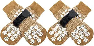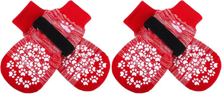 [Double Side No-Skid] It's our patent-exclusive design, Each side of the sock has [21 Cute Little Paw Grips] to provide strong extra traction when your dog is walking on the smooth floor. Even if the socks twist, they will still work. It's good for active dogs, and If your senior dogs has problems who was splaying and keeps slipping on your wooden floors with their back legs, it can help your old friends walk around in the house again!