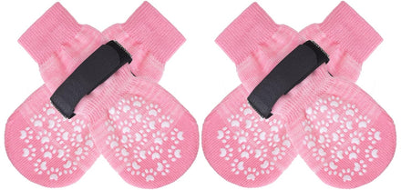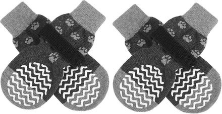 [Double Side No-Skid] It's our patent-exclusive design, Each side of the sock has [21 Cute Little Paw Grips] to provide strong extra traction when your dog is walking on the smooth floor. Even if the socks twist, they will still work. It's good for active dogs, and If your senior dogs has problems who was splaying and keeps slipping on your wooden floors with their back legs, it can help your old friends walk around in the house again!