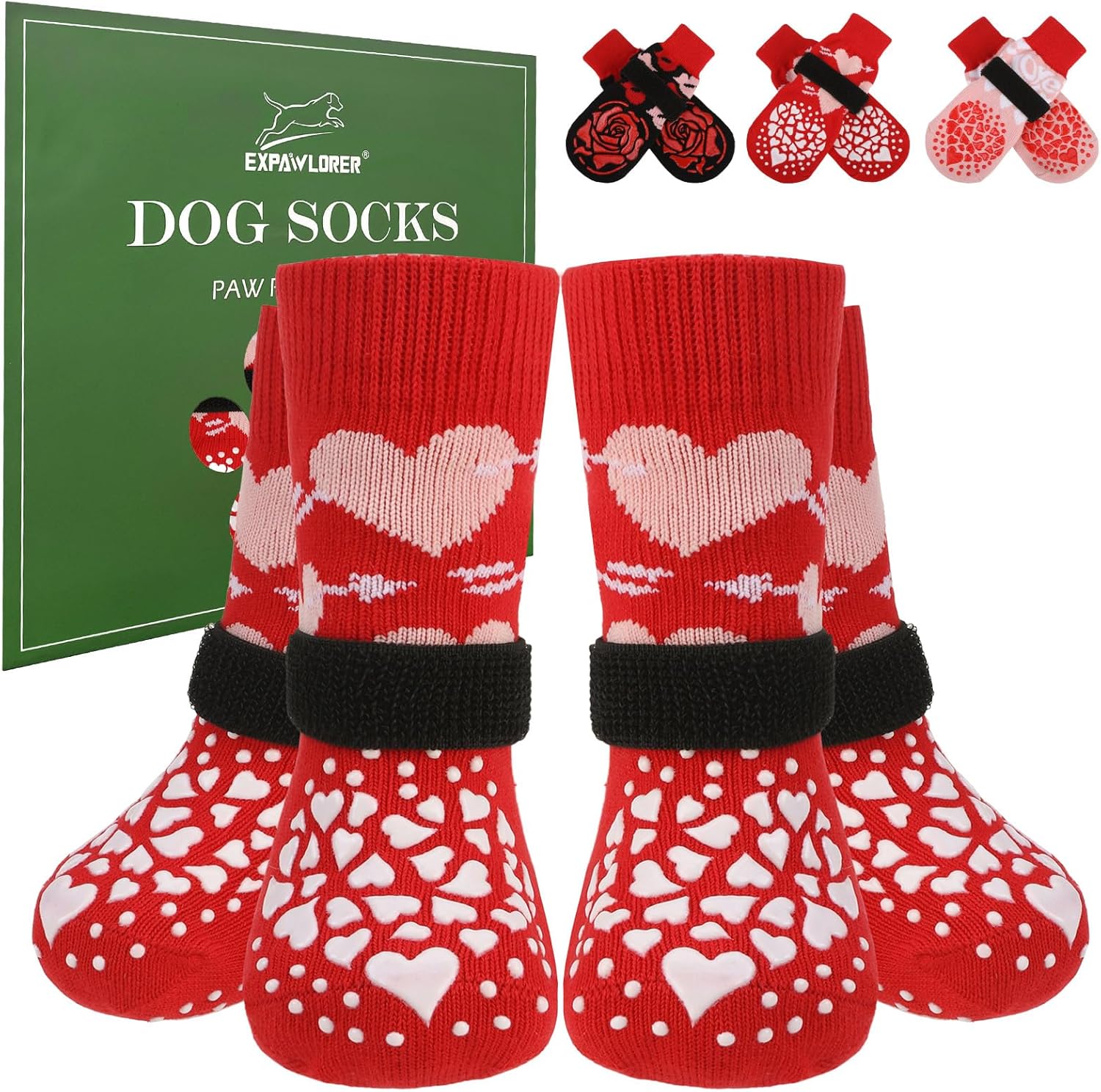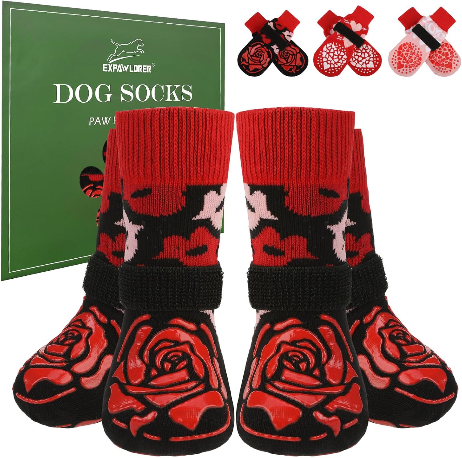 EXPAWLORER Anti Slip Dog Socks to Prevent Licking Paws, Dog Shoes for Hot Pavement, Dog Booties for Small Medium Large Senior Dogs, Traction Control Boots & Paw Protectors for Hardwood Floors