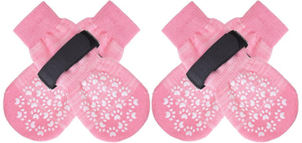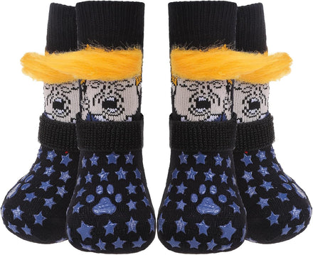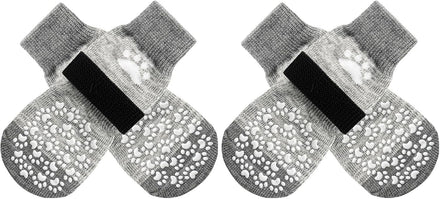 [Double Side No-Skid] It's our patent-exclusive design, Each side of the sock has [21 Cute Little Paw Grips] to provide strong extra traction when your dog is walking on the smooth floor. Even if the socks twist, they will still work. It's good for active dogs, and If your senior dogs has problems who was splaying and keeps slipping on your wooden floors with their back legs, it can help your old friends walk around in the house again!