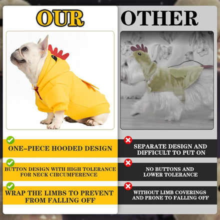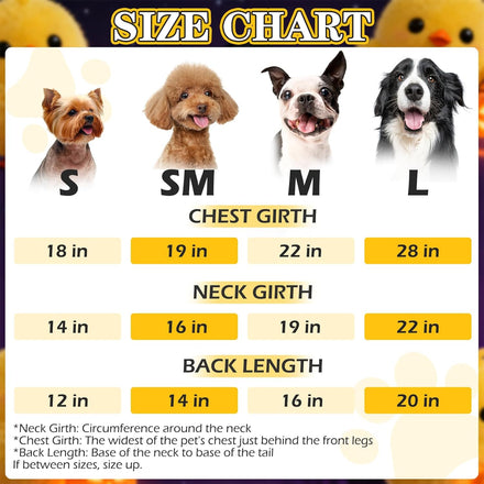 - Fits Well: This is a dog chicken costume for small medium large dogs. The size range is from S to L, meeting the needs of dogs of all body types to ensure the size fits well.Please measure your dog's chest circumference, back length and neck circumference before purchasing, and refer to the size chart to ensure that you can select the dog sweatshirt that is the most suitable for your dog's size. If it falls between two sizes, choose the larger one.