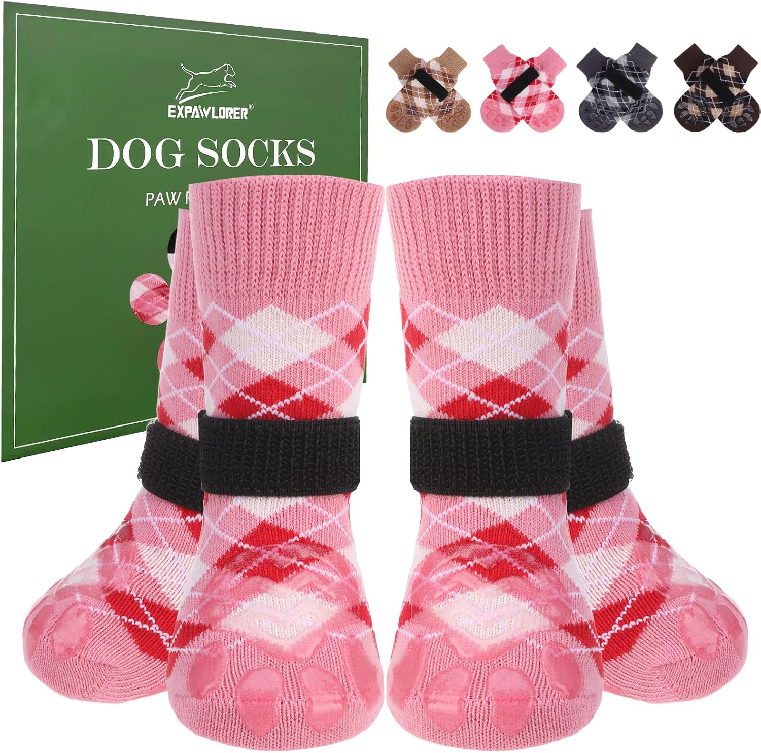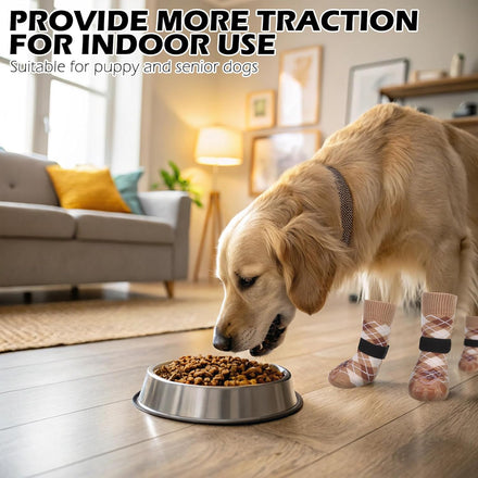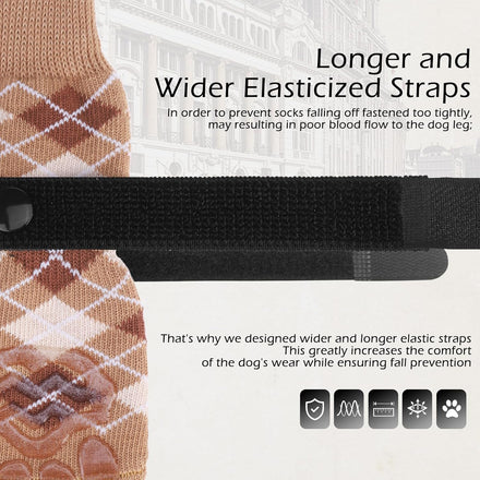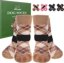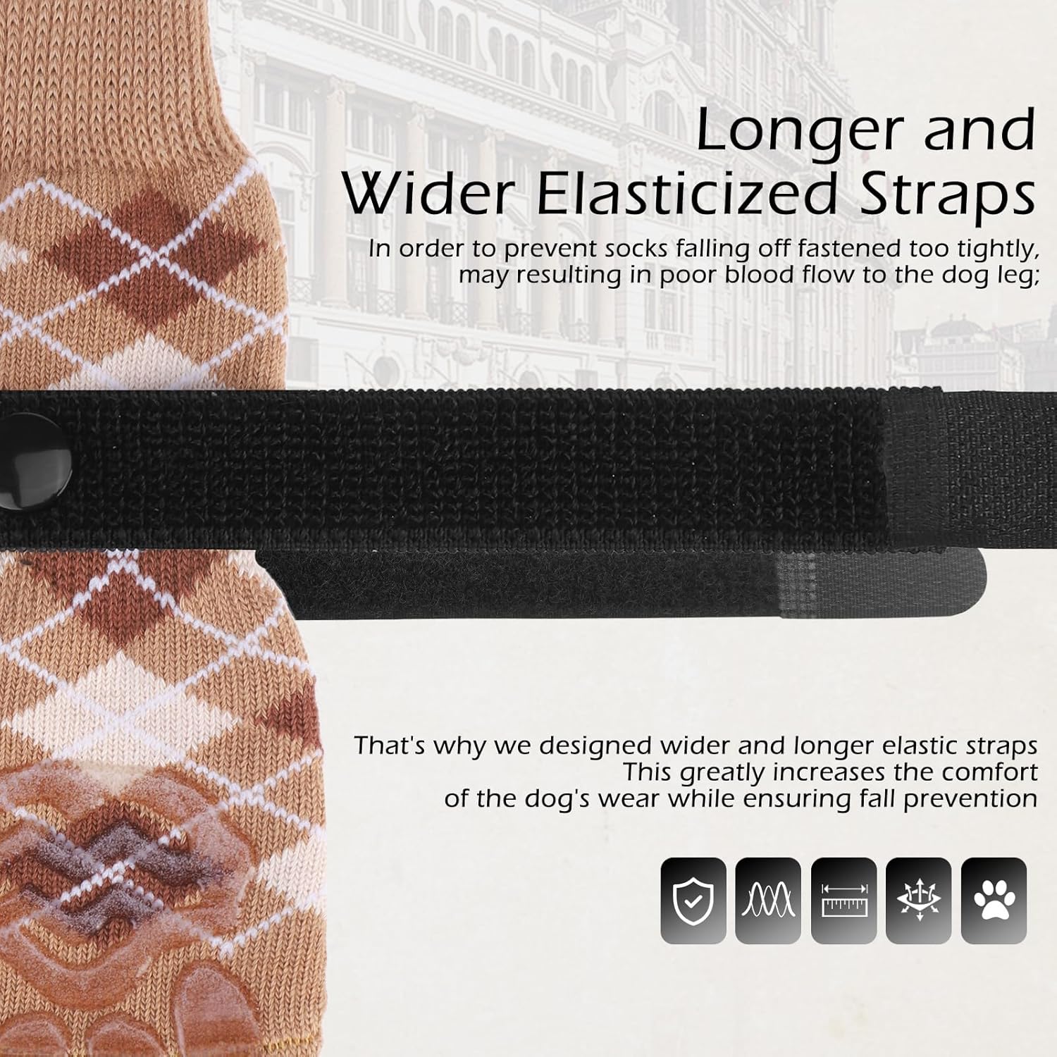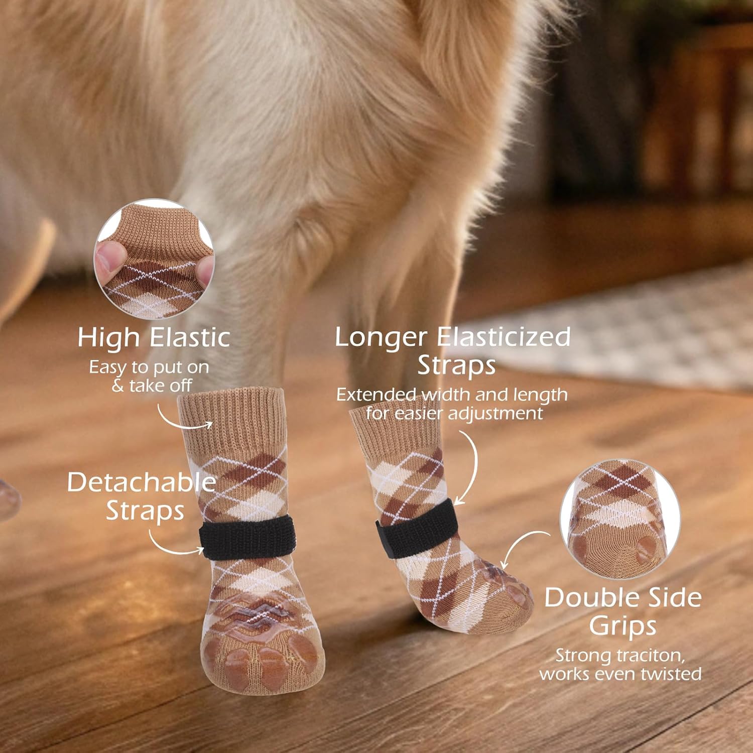 EXPAWLORER Dog Socks to Prevent Licking Paws,4 Pcs Double Sided Anti Slip Dog Socks with Grippers for Hardwood Floors,Dog Shoes Booties for Small Medium Large Senior Dogs,British Style,Khaki M
