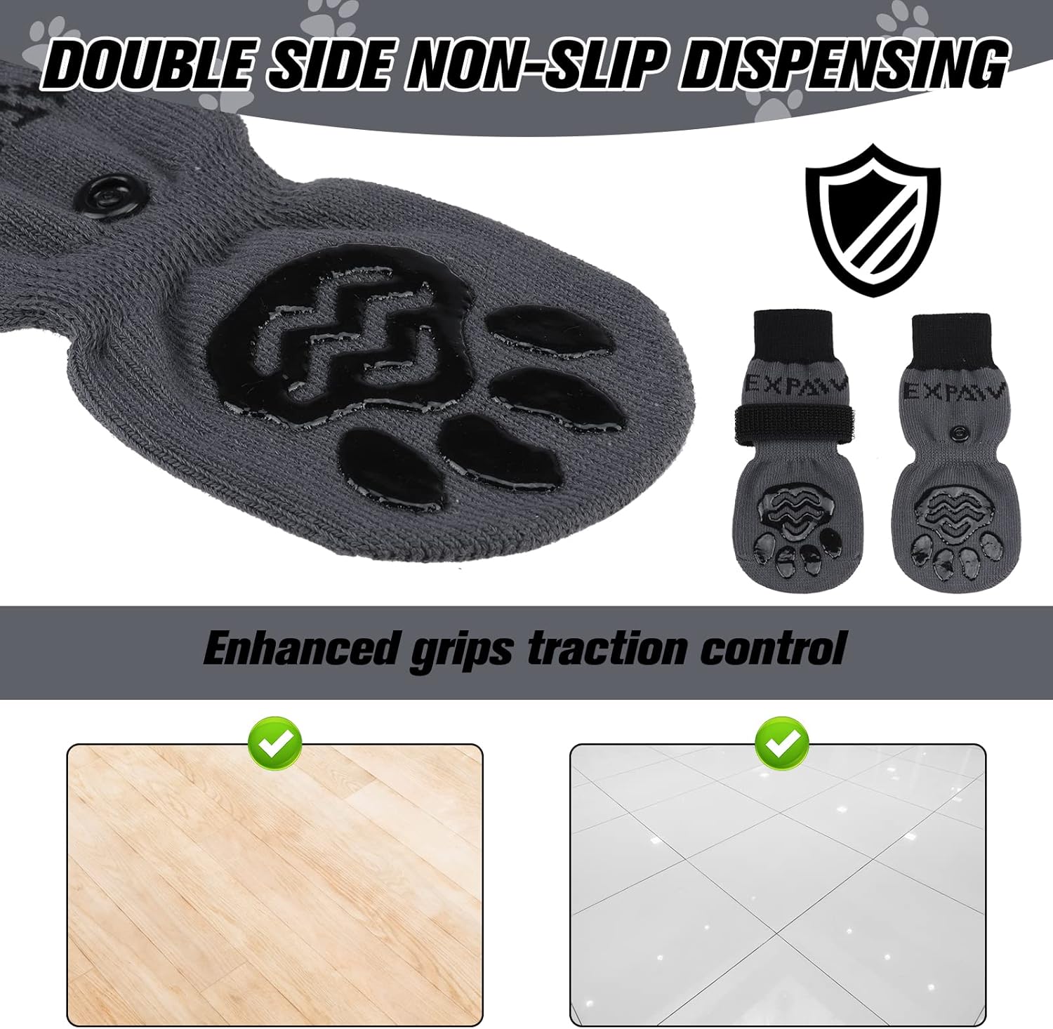 Double Sided Anti-Skid: Our dog is designed with double-sided large area glue dispensing. The huge dog paw pattern glue dispensing design gives your dog stronger traction control, especially suitable for families with particularly smooth floors.