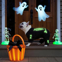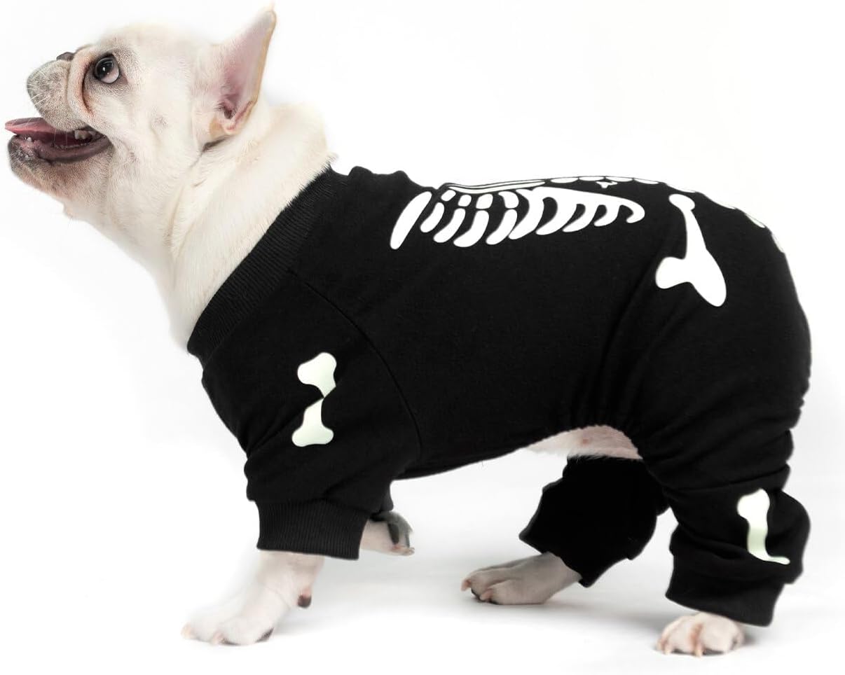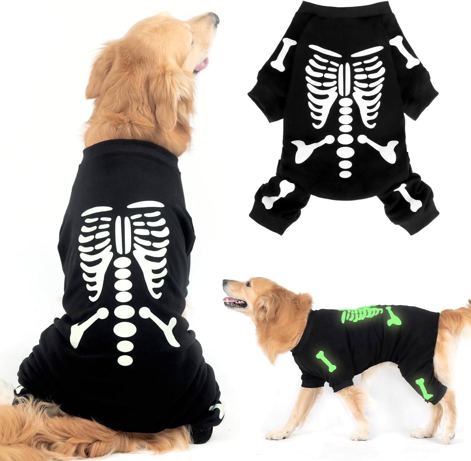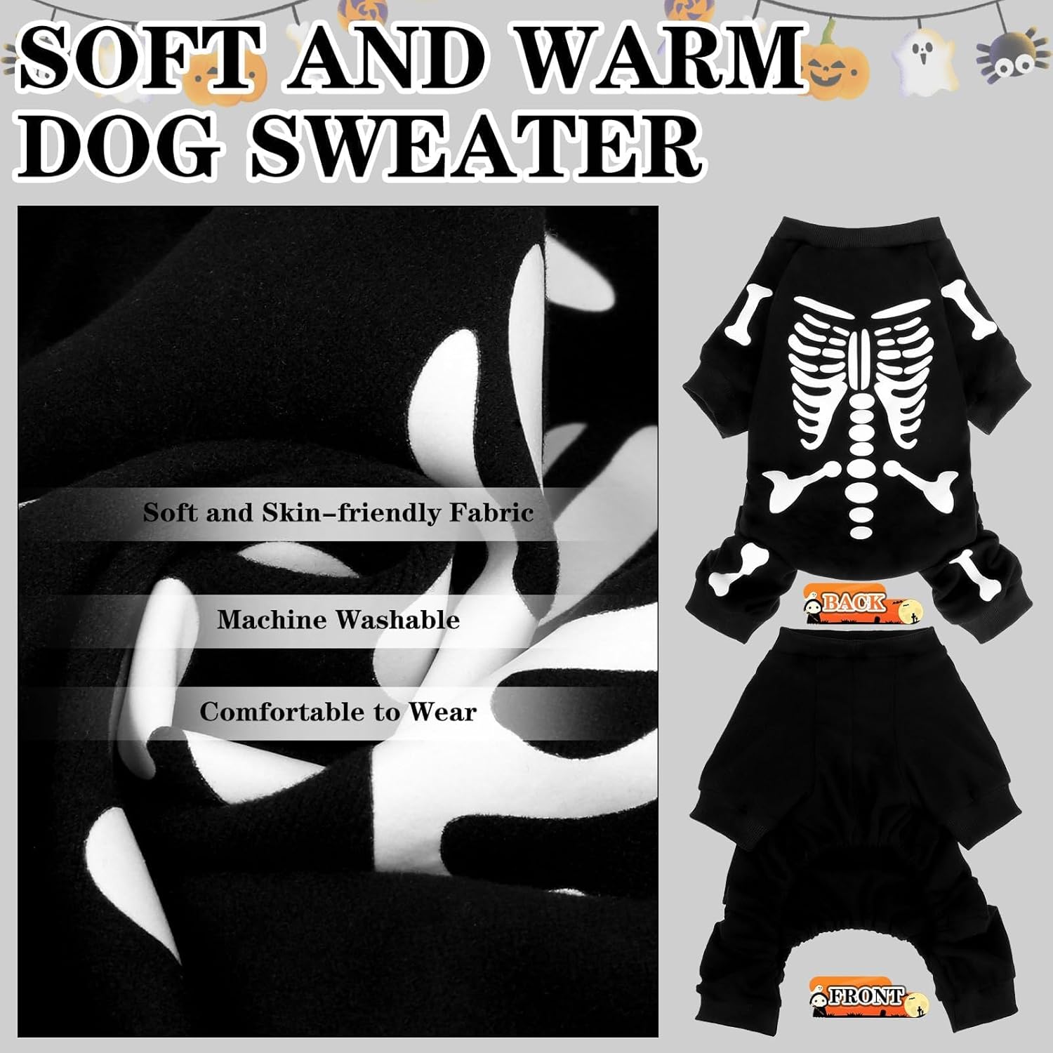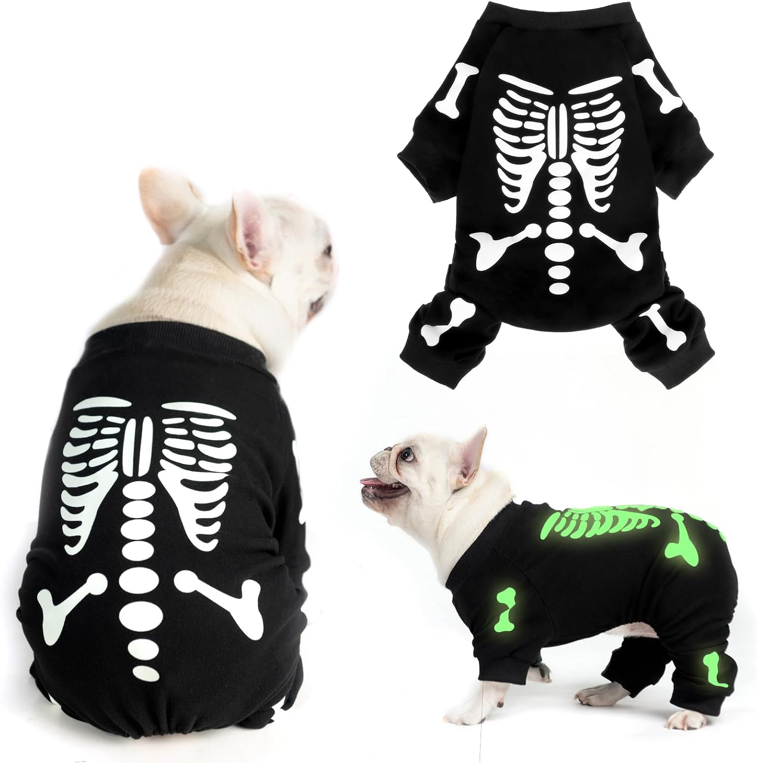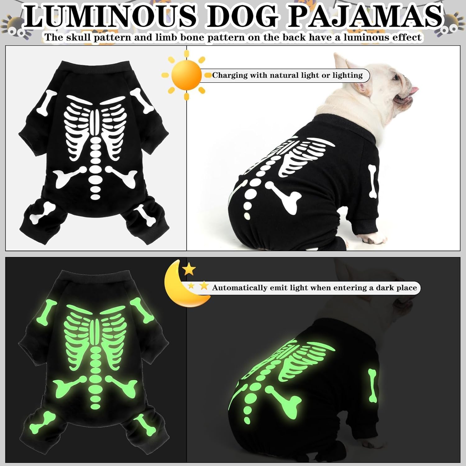 EXPAWLORER Halloween Dog Pajamas, Glow-in-The-Dark Skeleton Holiday Pet Costume, Warm, Soft & Stretchy Winter Clothes Sweater Jumpsuits with Sleeves for Small Medium Large Boys Girls Dogs Cats M
