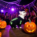 GLOW IN THE DARK SKELETON: Features a spooky glow-in-the-dark skeleton design on the back that charges in light and emits an eerie green glow (or specify color) in darkness, making you the center of attention at any Halloween party! Its is perfect for standing out at Halloween parties, nighttime walks, or themed events