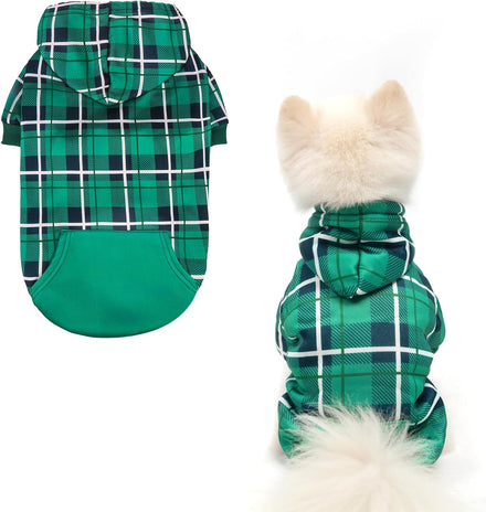 EXPAWLORER Plaid Dog Hoodie - British Style Warm Dog Sweater Shirt with Leash Hole,Pitbull Clothes Outfits,Winter Coat Apparel for All Breeds Puppy Girl Boy-Cat Apparel
