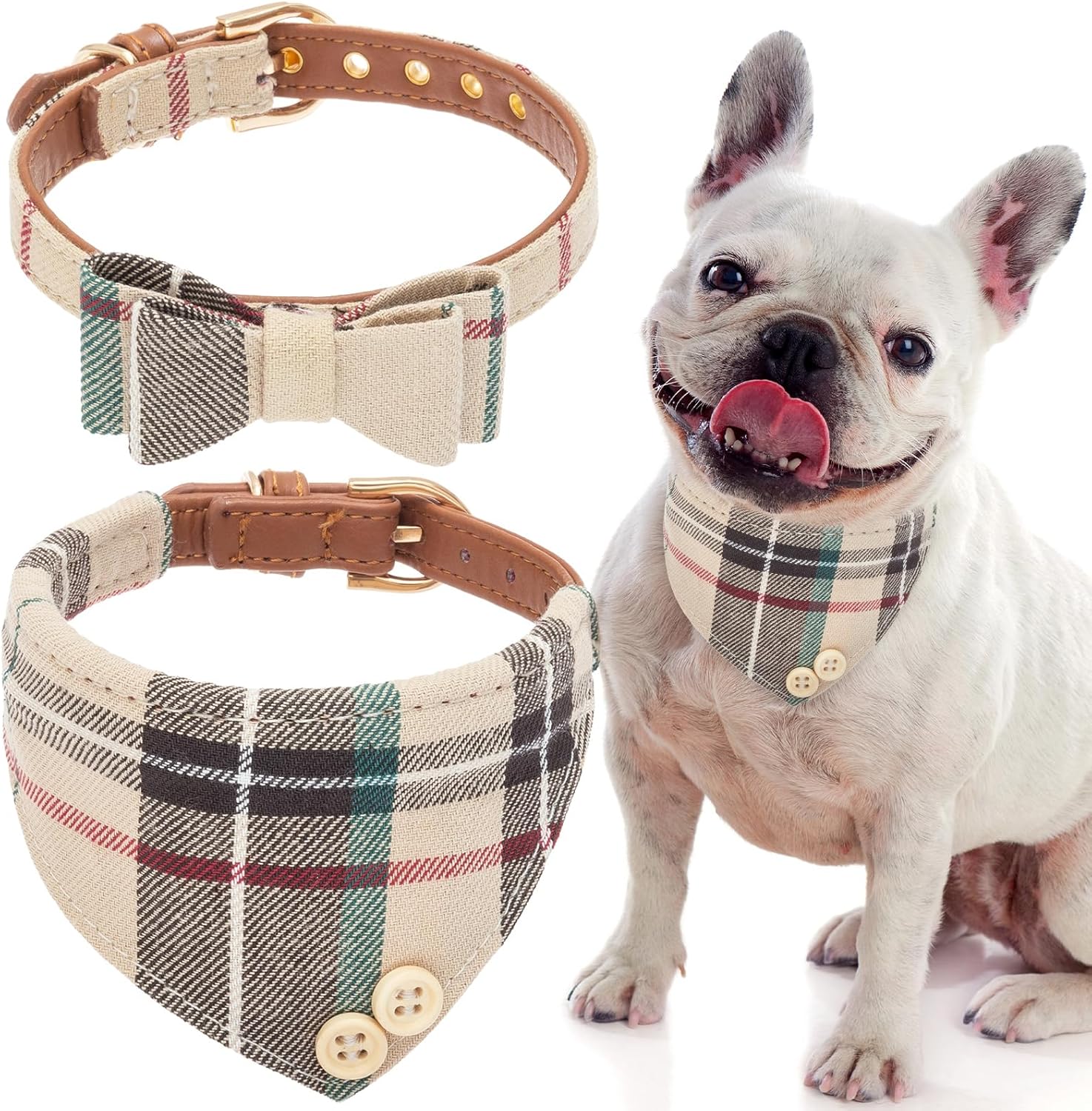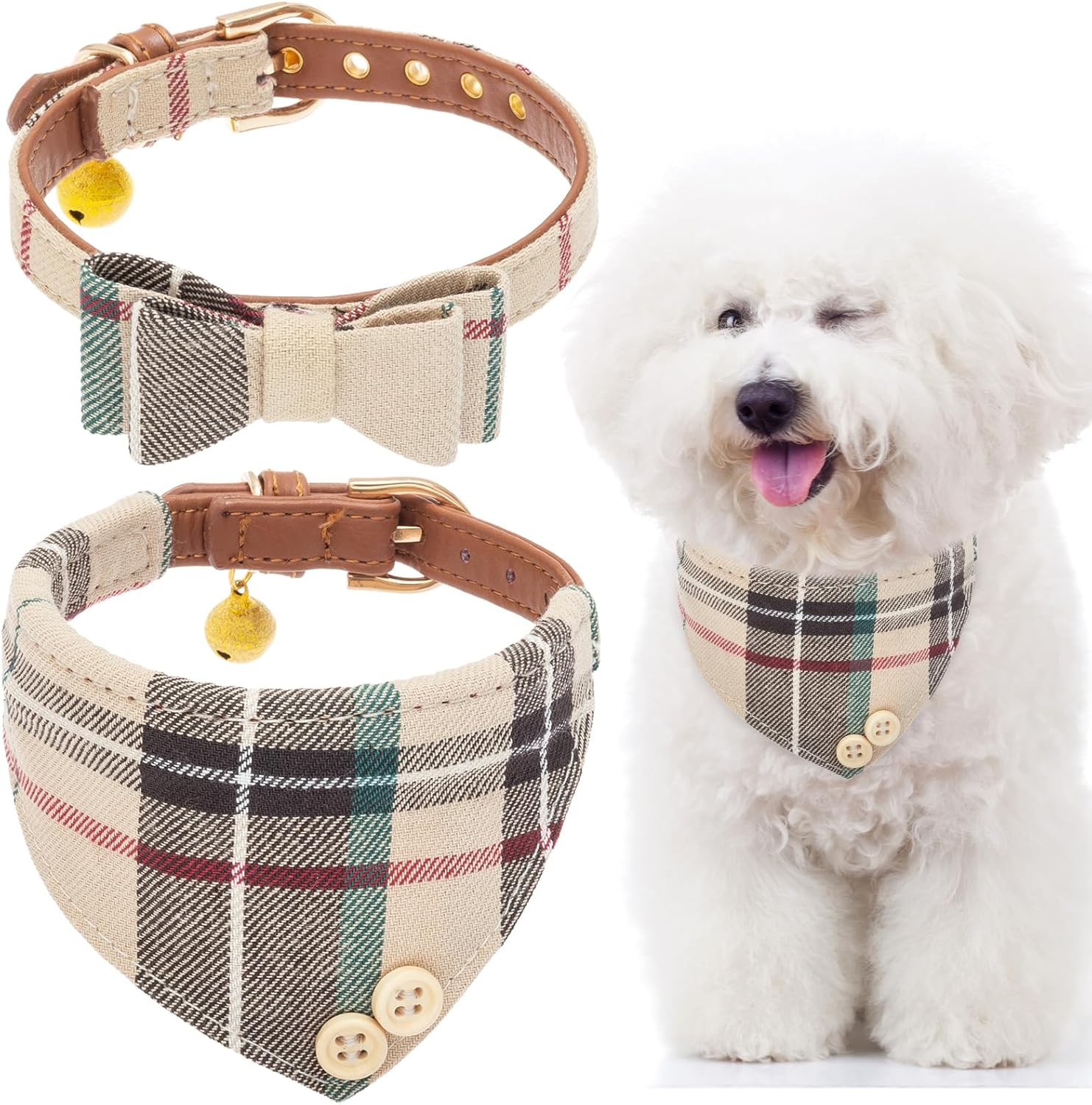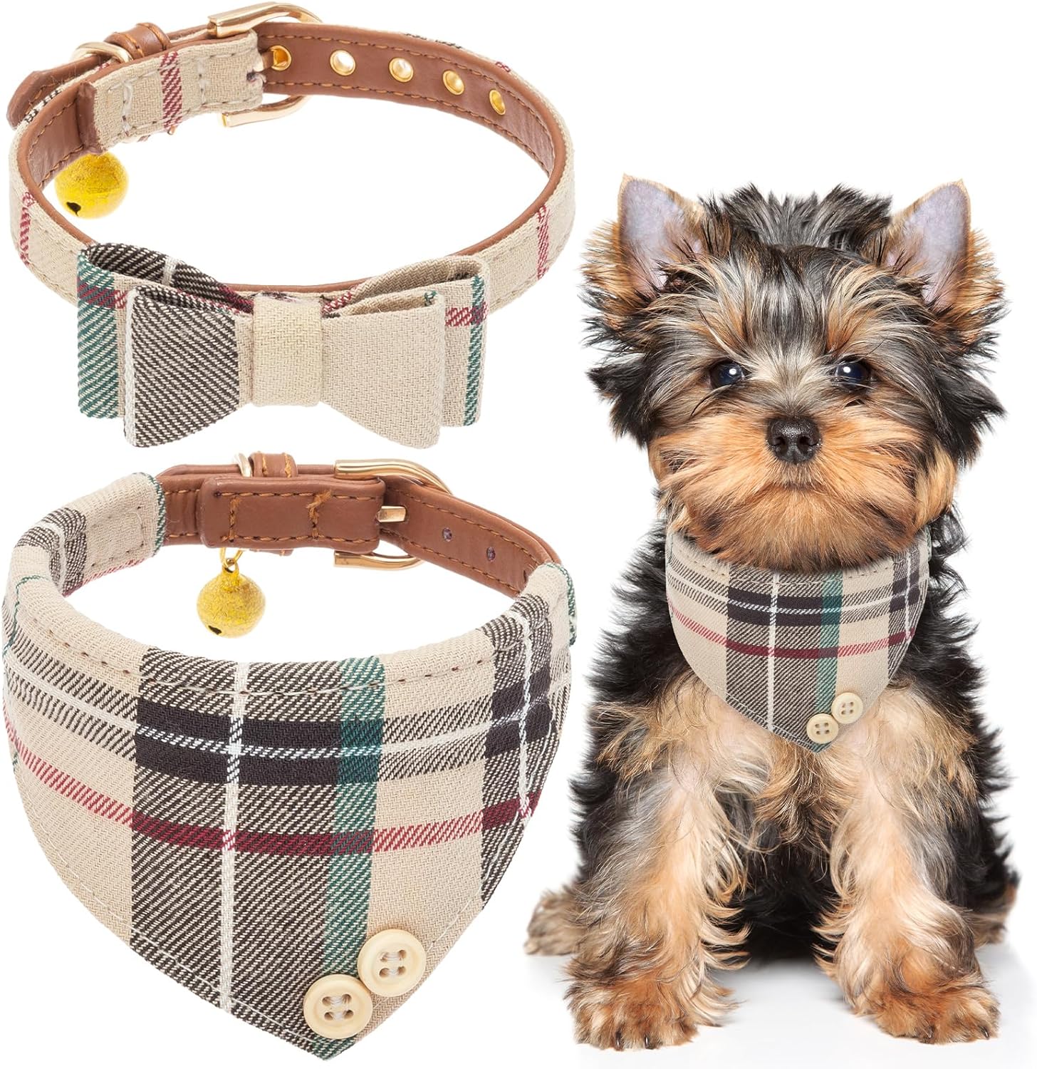 Classic Meets Fashion: This timeless plaid design is both stylish and practical. The bow tie collar adds a touch of class, while the other puppy collar is perfect for a casual look.