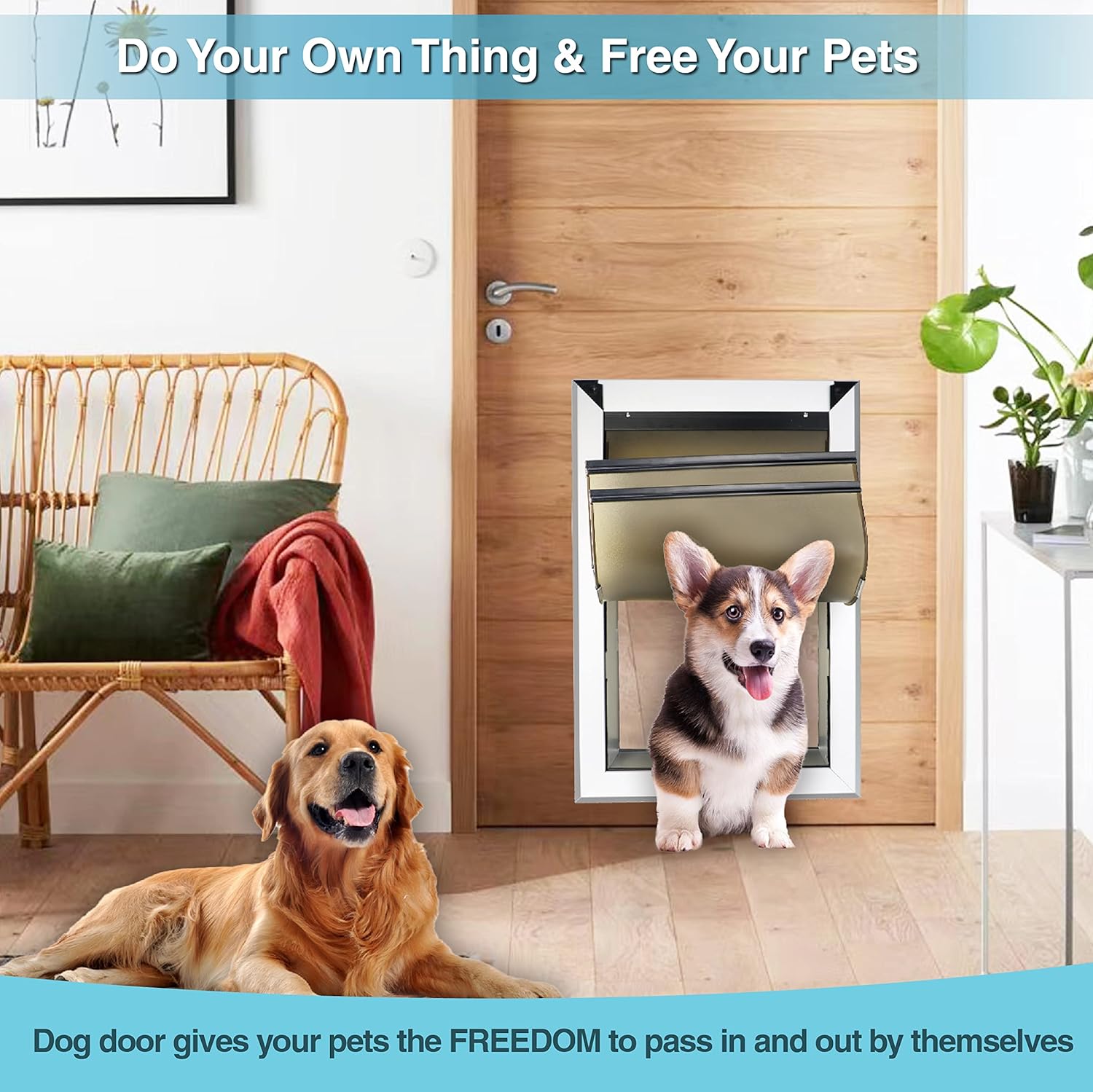 - 【Freedom and Independence】: This large aluminum dog door has double Flaps with 6pcs magnetic, which allows the dog to enter and exit independently and automatically returns after the dog passing- Free them in garden and house by themselves.