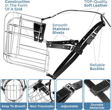 - Safe and Premium Materials: Expertly handcrafted from genuine leather and durable, smooth steel, our cage muzzle for dogs provides exceptional safety, comfort, and long-lasting quality.