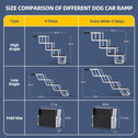 - Safety & Non-slip: Non-slip paw print coating surface prevent pets from slipping when climbing stairs, slip-resistant rubber mat attached to the bottom makes the stairs not move even if in slippery places. Updated carabiner safety tether for securing the stairs to the vehicle offer double protection for your dog.