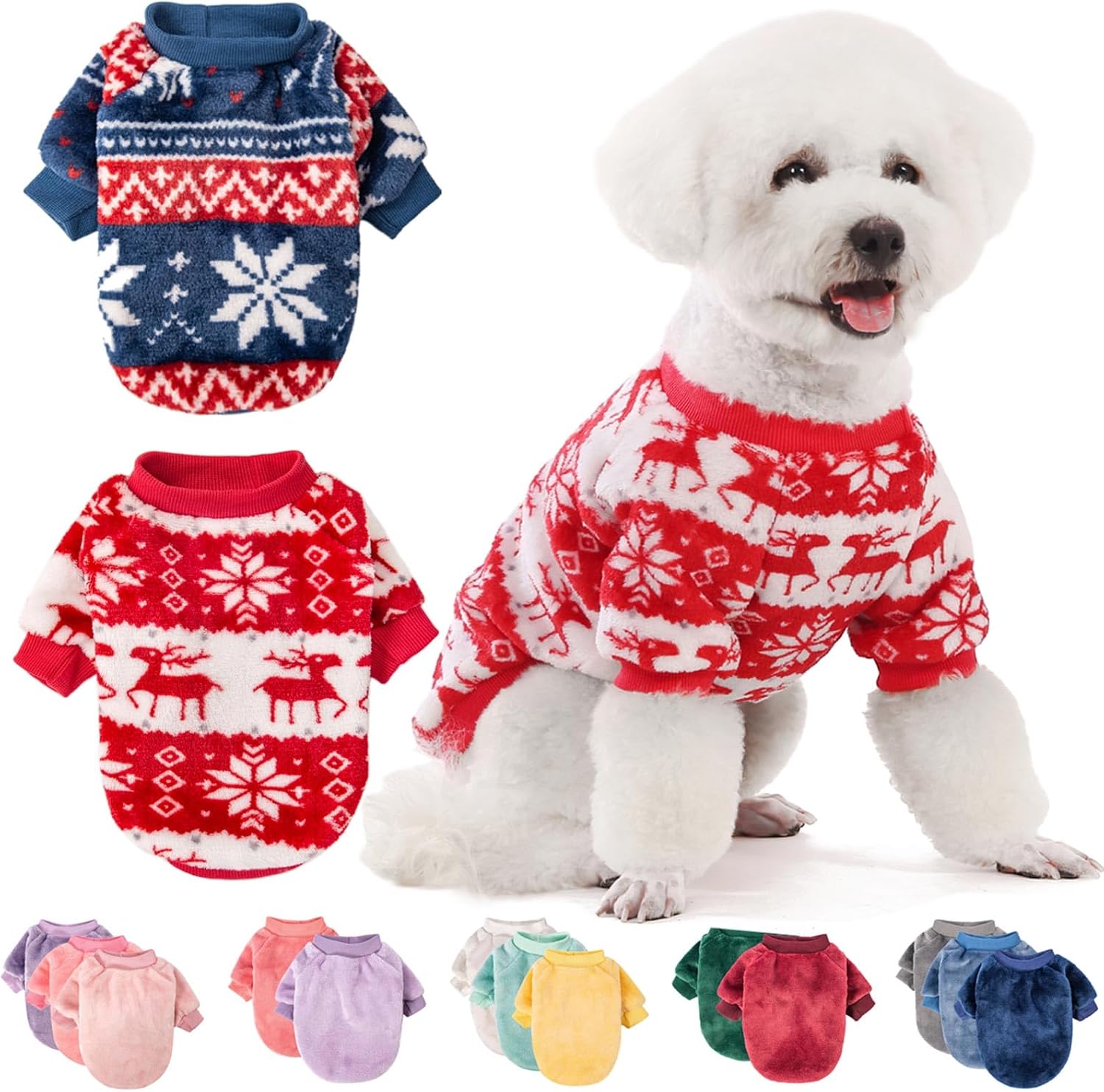 FabriCastle Dog Sweater, 3-Pack Dog & Cat Clothes, Ultra Soft and Warm Pet Jackets XXS XS for Small Dogs Boy & Girl, Winter Pet Apparel Costumes, Puppy Outfits (Grey,Blue,Dark Blue, Small)