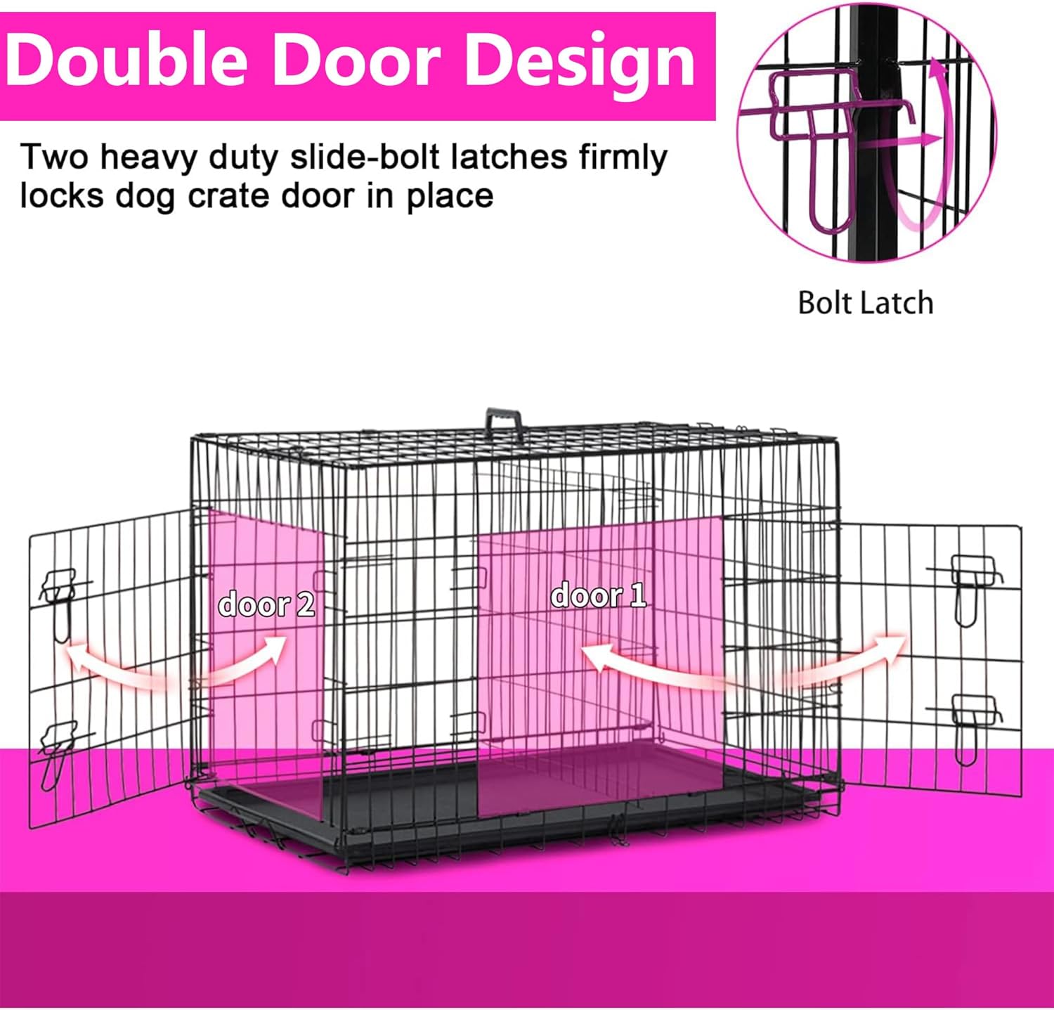 These premium quality FDW metal pet crates are crafted using commercial-quality materials and Superior manufacturing. The crates feature multiple doors that lock easily with a slide-bolt latch. Finished with a durable black electro-coat finish, These crates are rust, corrosion, and fade resistant even in extreme climates. To set-up, Simply unbox and fold open; no tools are required. Each crate features a lightweight, slide-out tray made of durable ABS plastic. The tray features a lip around the perimeter and is held in place with a retaining bar making it easy to remove and clean without needing to open the crate door. With the rounded edges of the crates, your pet cannot injure themselves on any sharp metal pieces. features brand new and high quality. set-up and fold-down in seconds, no tools needed. a front and a side door for convenience. two bolt latches for each door, keep pup safe. tough ABS plastic pan easy to clean. portable split divider. sturdy metal construction,. durable anti-rust Black epoxy coating. travel safe - take it Anywhere. material: low carbon steel wire. rounded edges to protect pet. fully assembled, just open and fold. dog crate dog cage pet cage pet kennel wire kennel animal cage wire dog crate metal dog crate folding dog crate metal dog cage wire pet cage with divider pet crate 48inch 42 Inch 36 Inch 30 Inch 24 Inch folding dog kennel metal dog kennel dog Kennels and crates for dogs folding dog cage dog playpen crate animal kennel for dog dog crate w/divider panel folding metal dog crate metal dog crate tray metal dog crate 48 inch 42 Inch 36 Inch 30 Inch 24 Inch Dog crate with tray metal dog kennel wire pet cage 48inch 42 Inch 36 Inch 30 Inch 24 Inch portable dog crate easy to clean dog cage safe and comfortable pet cage dog crate dog cage pet crate 48 inch 42 Inch 36 Inch 30 Inch 24 Inch folding metal pet cage double door w/ divider panel dog kennel leak-proof plastic tray wire animal cage.