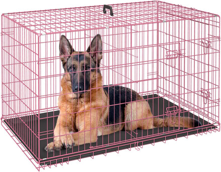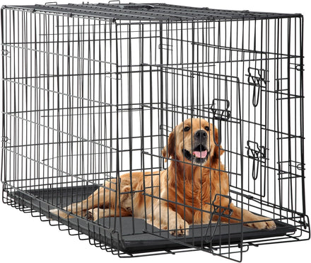 - 🐕【Dog Crate Made of Durable Materials】: the dog crate Made of high Tensile-Strength wire gauge.The dog cage ideal for training and transporting well-behaved pets. Pet crate epoxy coating finish extends the life of the crate and provides resistance against rust, corrosion, and fading, even in the most extreme climates. Dog crate dog cage pet crate.