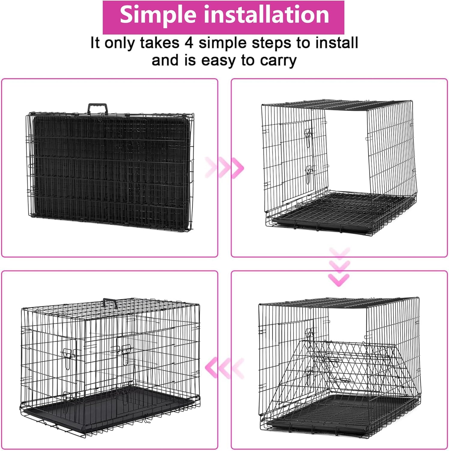 - 🐕【Designed to Safe and Comfortable】: The pet cage have two large doors, one on the front and one on the side, are easy to open, close.Heavy duty securely lock with dual latches, providing a safe and secure environment for your pet.The dog cage designed to keep animals safe and comfortable. Pet kennel wire dog crate animal cage.