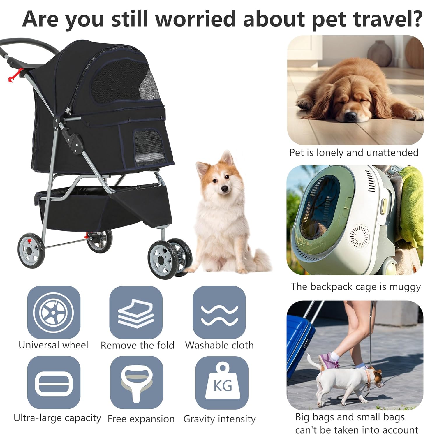 - 🐶【Simple to Put Together & Fold】 Assemble your pet stroller in minutes with the included manual. Effortlessly fold it for convenient handling and storage. Our pet stroller itself weighs 10 pounds, but has a load-bearing capacity of 33 pounds.The lightweight design ensures a hassle-free experience, perfect for delightful strolls with your feline friend. Whether it's a cozy cat chair or a jogging companion for your dog, our versatile pet stroller has you covered.