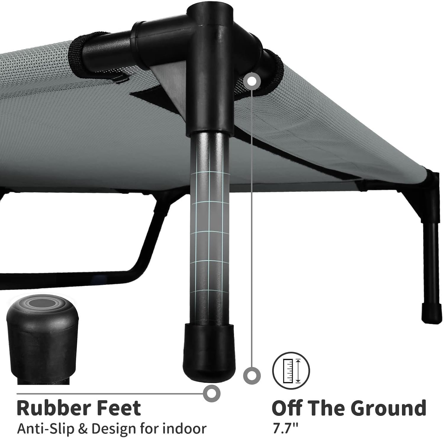 - Easy to clean: The raised dog bed is easy to clean and maintain, as the elevated dog bed mesh fabric is removable and machine washable. This elevated dog bed ensures that your pet always has a clean and hygienic resting place.