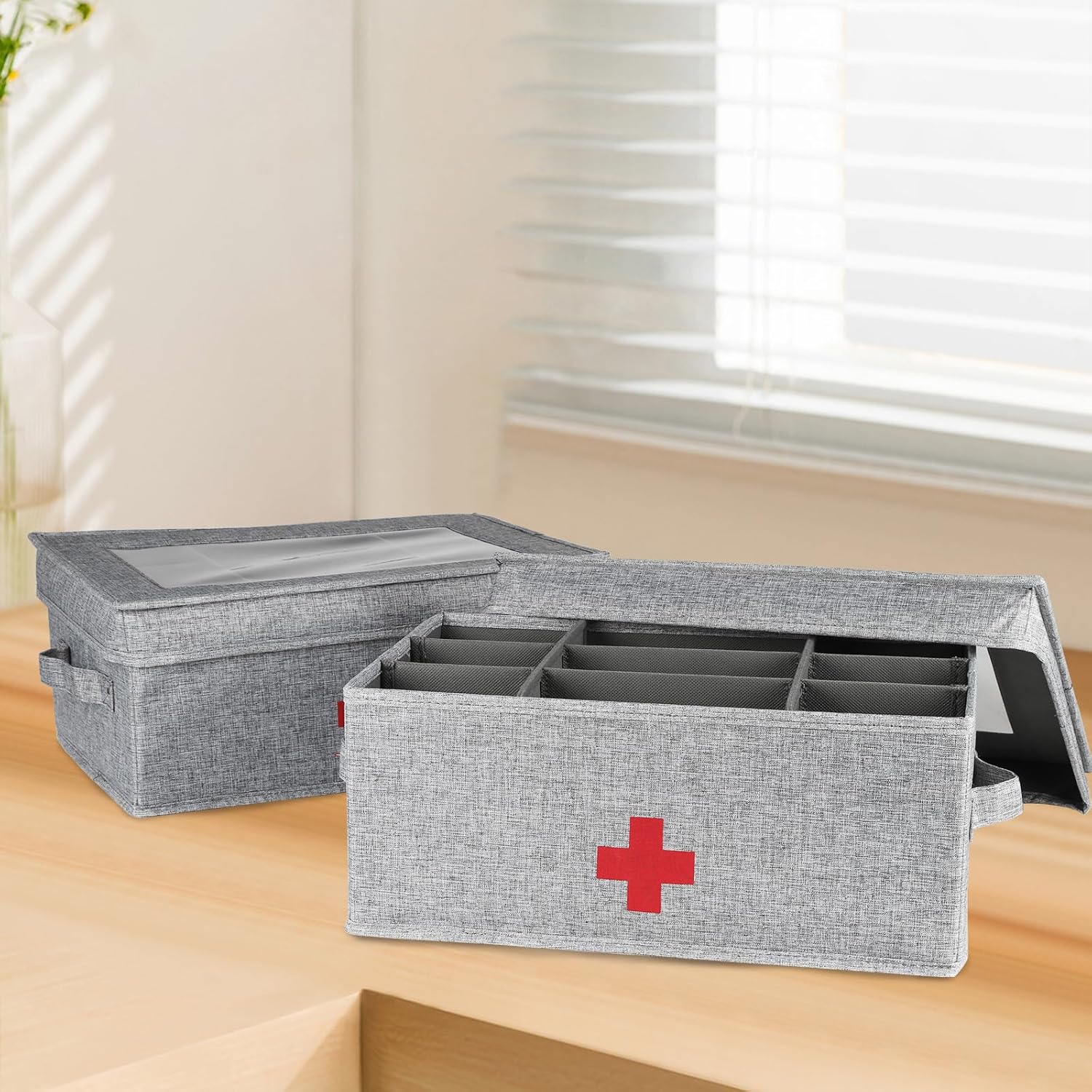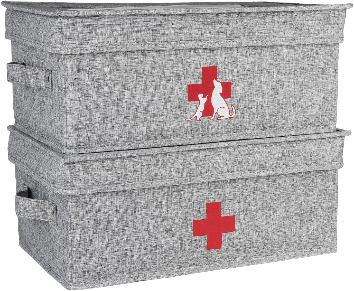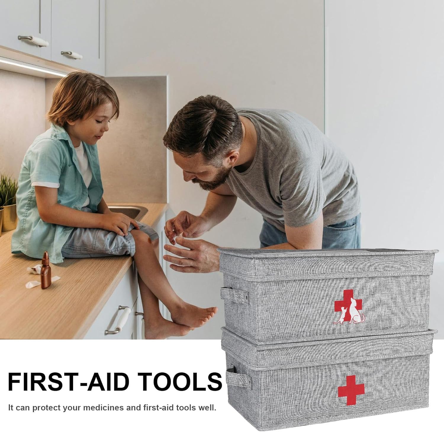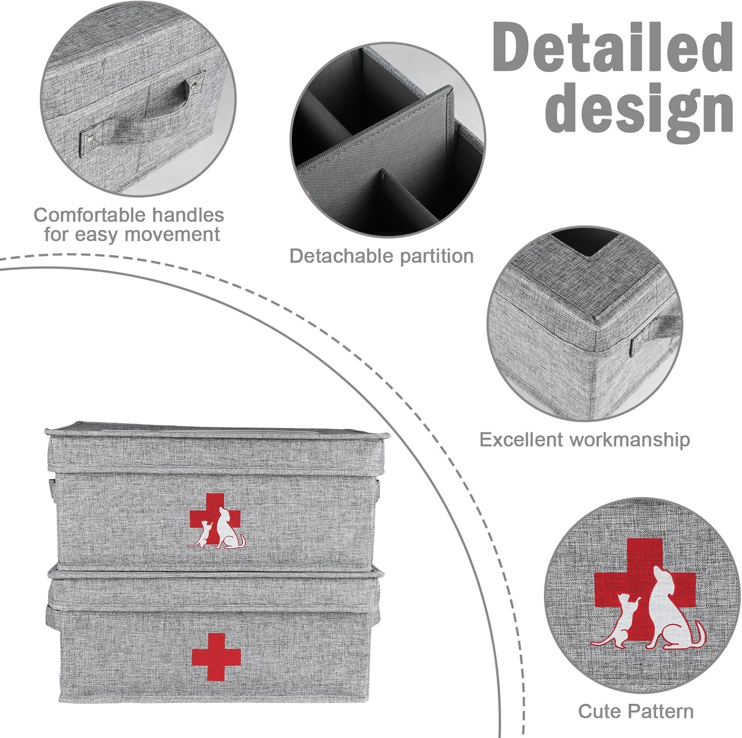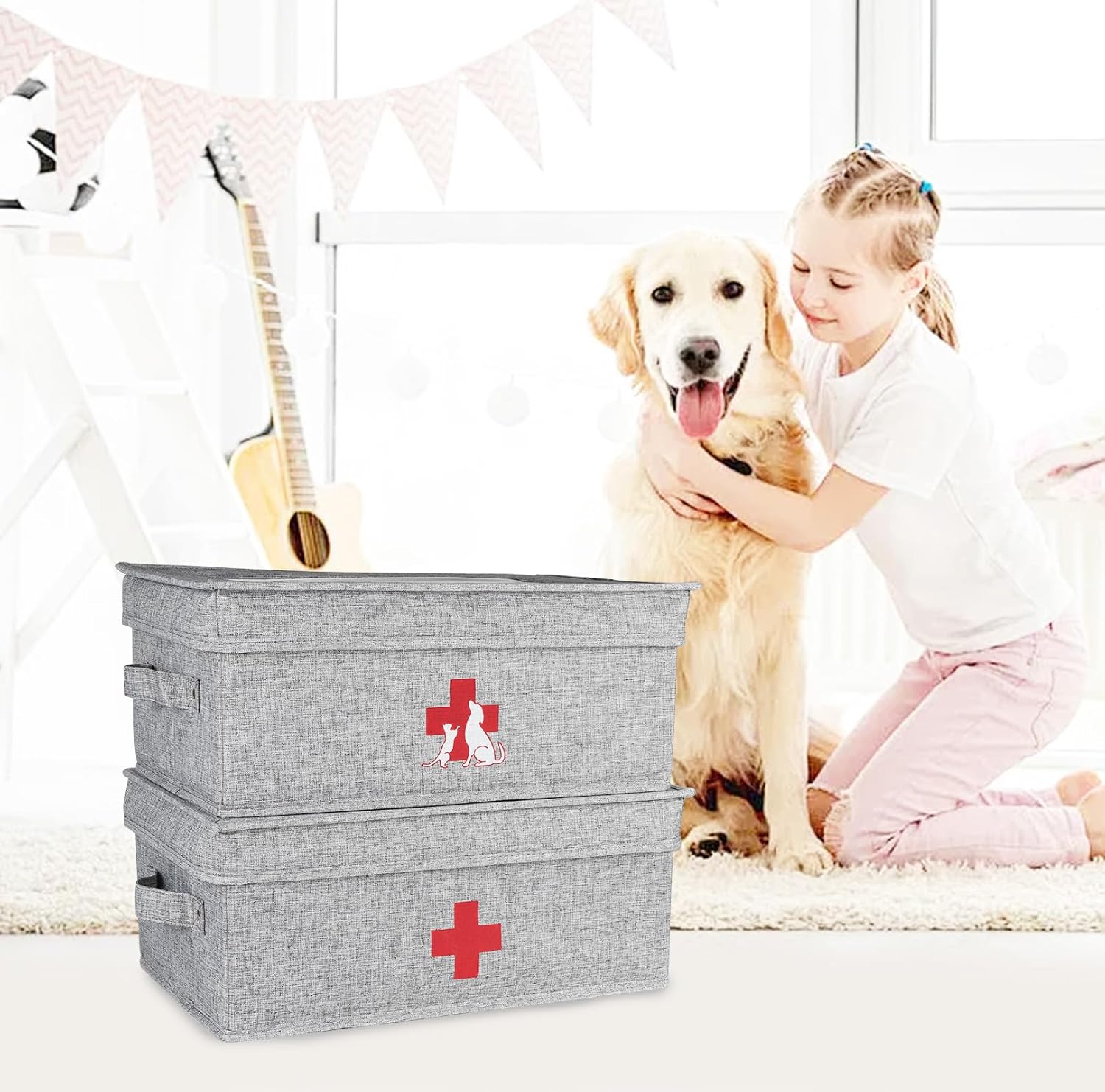 Xbopetda introduces a range of storage boxes, each clearly labelled and with a specific purpose, making organizing your everyday household items more manageable. Xbopetda Set of 2 Fabric Empty First Aid Storage Box for Home and Dogs Cats Suitable for Bedroom, Living Room, Dining Room, Kitchen, Bathroom, Home Office Multi Compartments First Aid Container The first aid box organizer empty have 12 compartments and the inside dividers can be removed. The bandaid organizer is perfect for organizer medicine, ointments, adhesive bandages, dental and other first aid supplies. Movable Partitions We designed this first aid organizer with pull-out dividers to fit various size of medicine bottles and unlock more possibilities. Keep Medical Supplies Neat and Organized This fabric bandaid organizer container makes home medicine, Vitamin supplements and first aid kit of pet easy to organize and refill as needed. Features nicely laid-out sections for sorting your essentials. Portable Handles The sturdy side handles of first aid boxes are designed thoughtfully to make it easier to move, making indoor and outdoor use very convenient