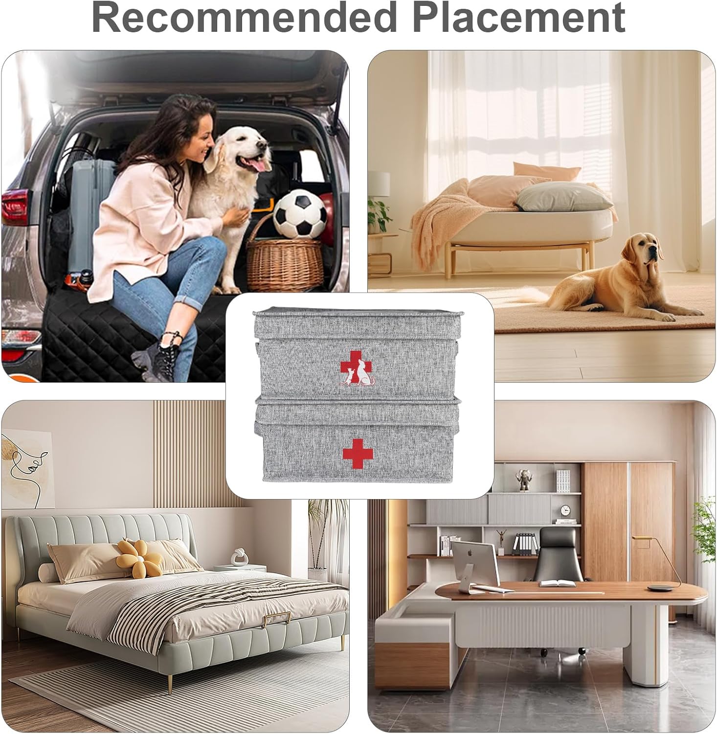 - 4. Stackable and Collapsible First Aid Box: This pantry storage container set comes with a first aid kit box for home and a pet first aid bin, they can be stacked for storage to save space while centralizing the management of daily medicines needed by the family. What's more, you can fold and store these storage boxes to save space when not in use.