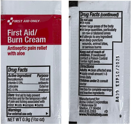 - OSHA-Compliant Emergency Kit: Includes adequate supplies for assisting up to 100 people, including bandages, gauze, butterfly closures, burn cream packets, antibiotic ointment, BZK antiseptic towelettes, disposable gloves, scissors, and tweezers